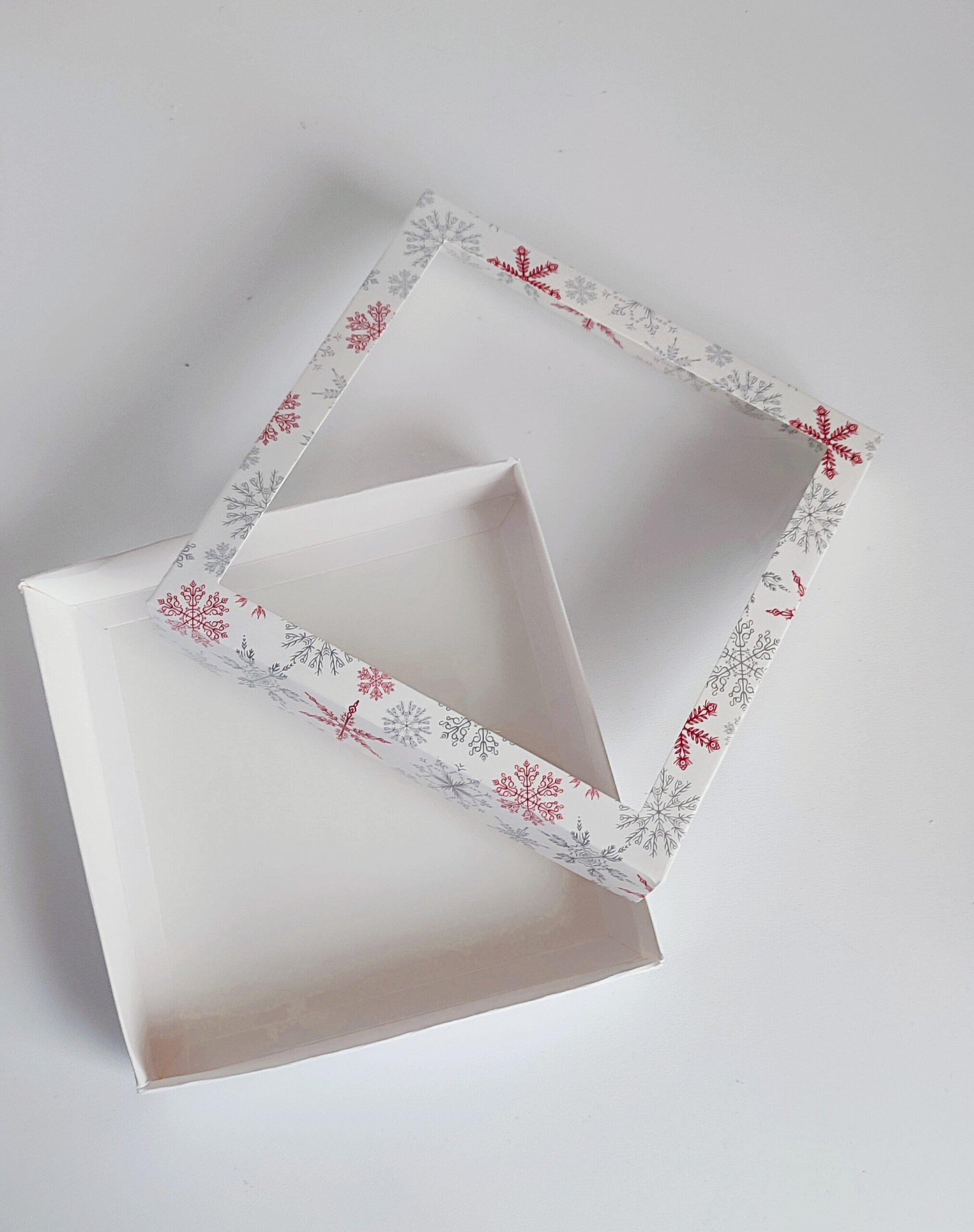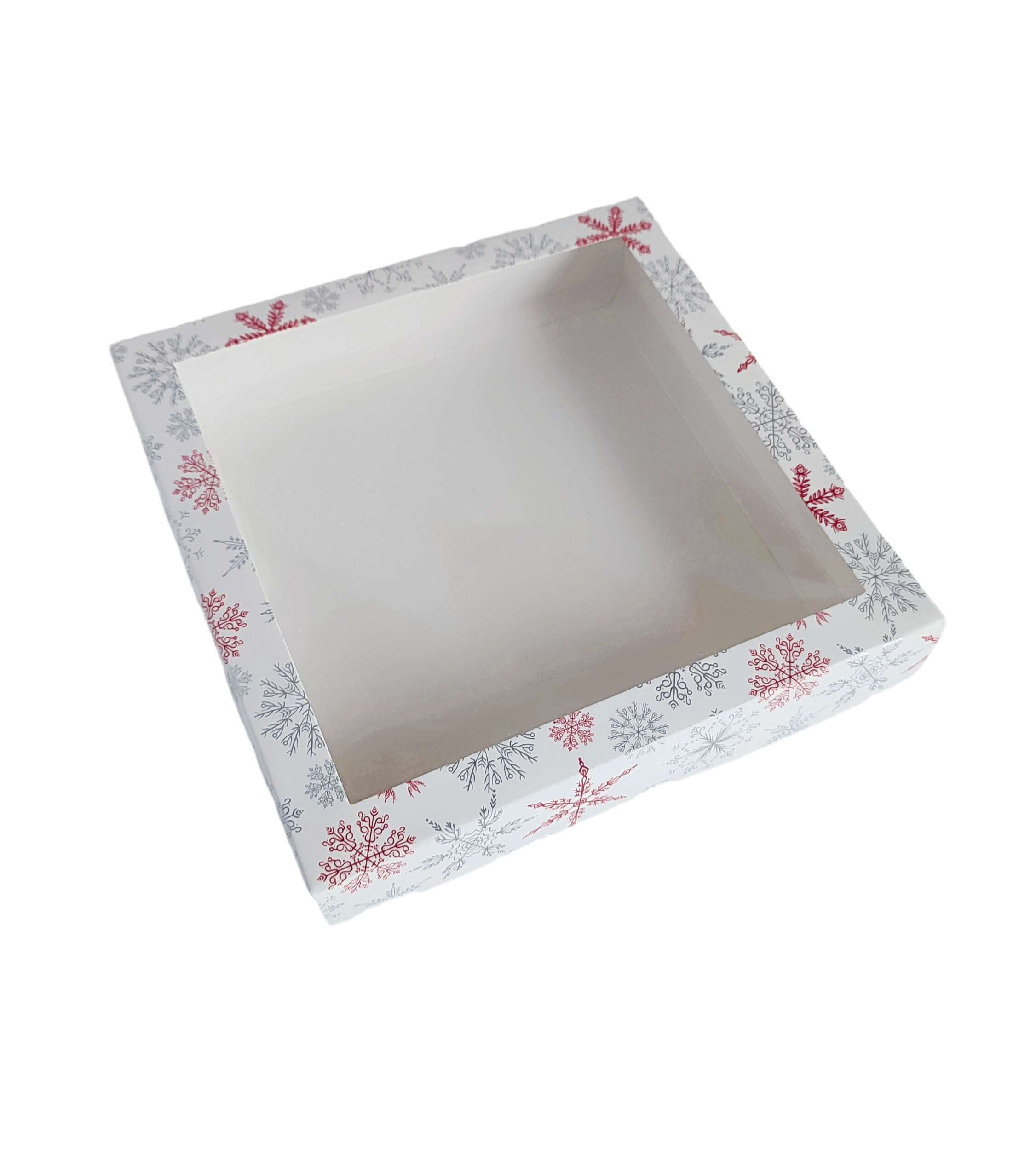 Pudełko prezentowe Świąteczne z okienkiem 15X15X3 cm nadruk śnieżynki
