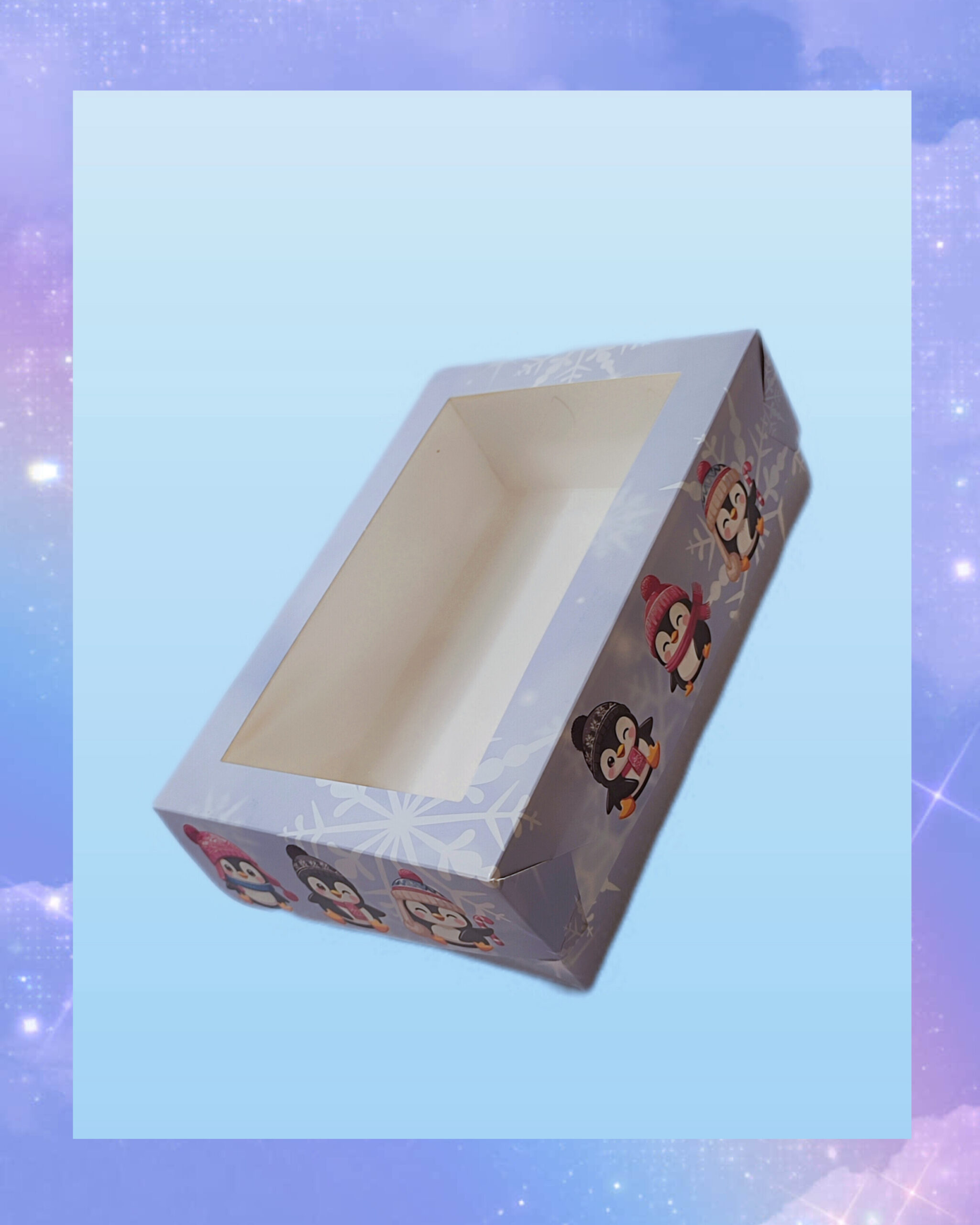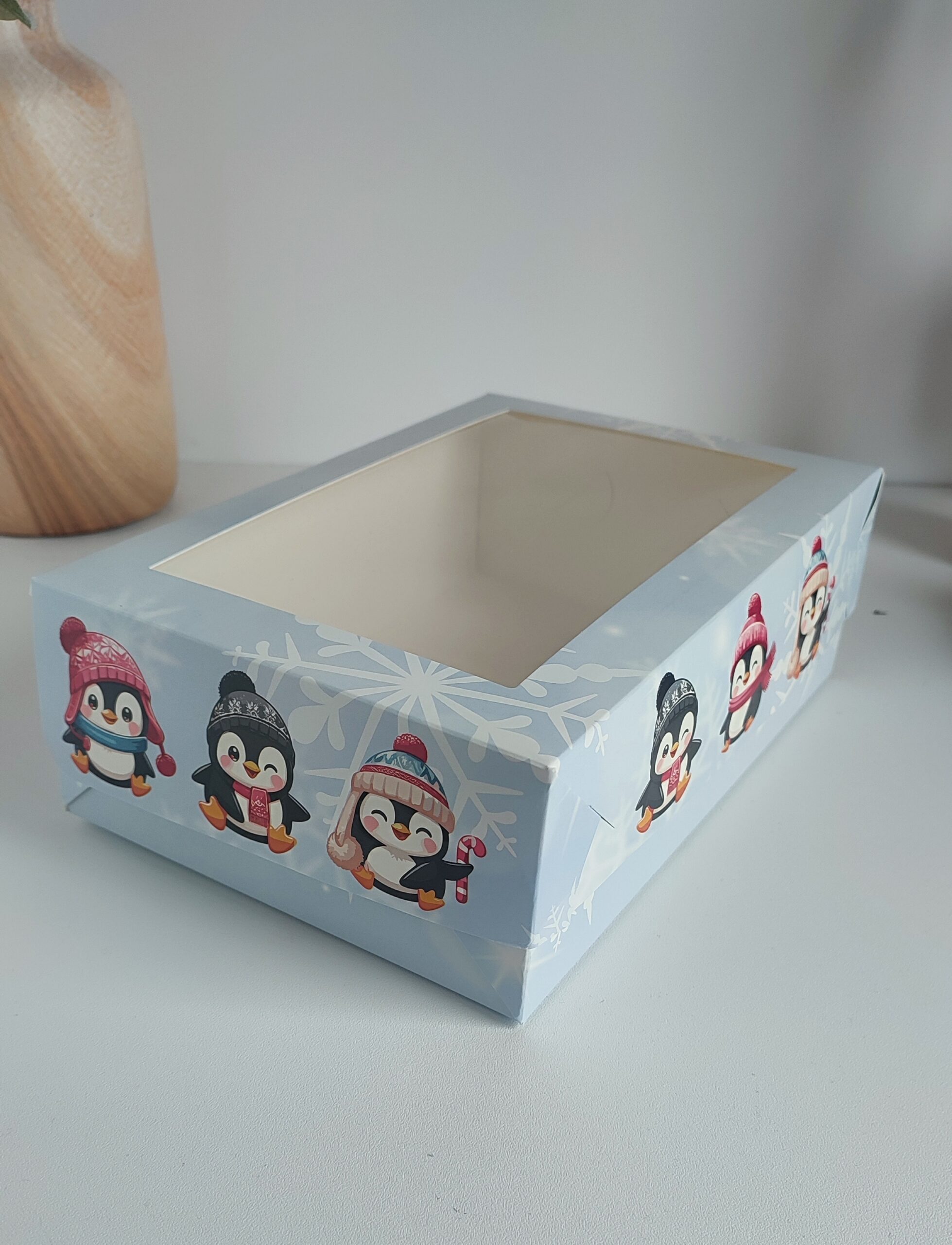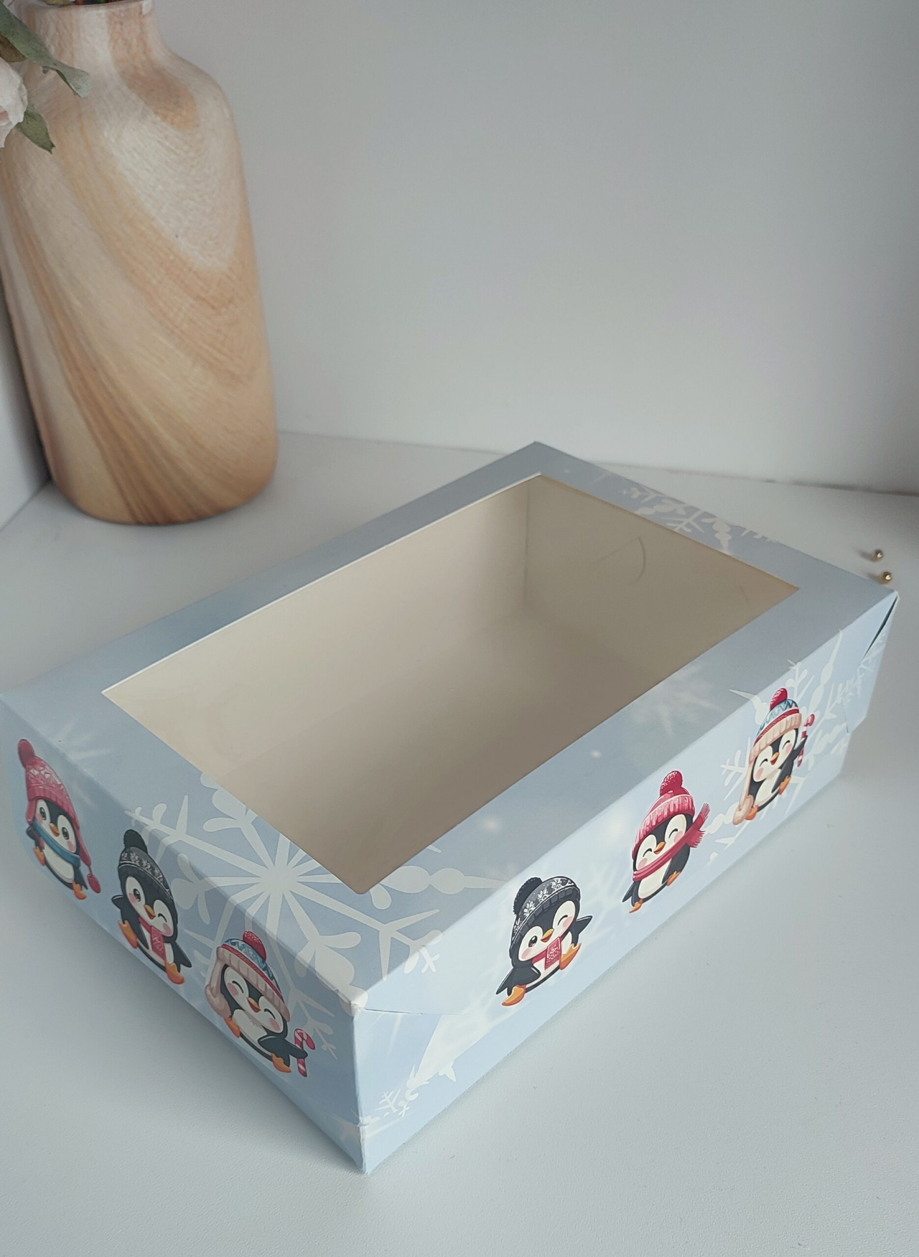 Pudełko prezentowe Świąteczne z okienkiem 25X17X8 cm z nadrukiem pingwin