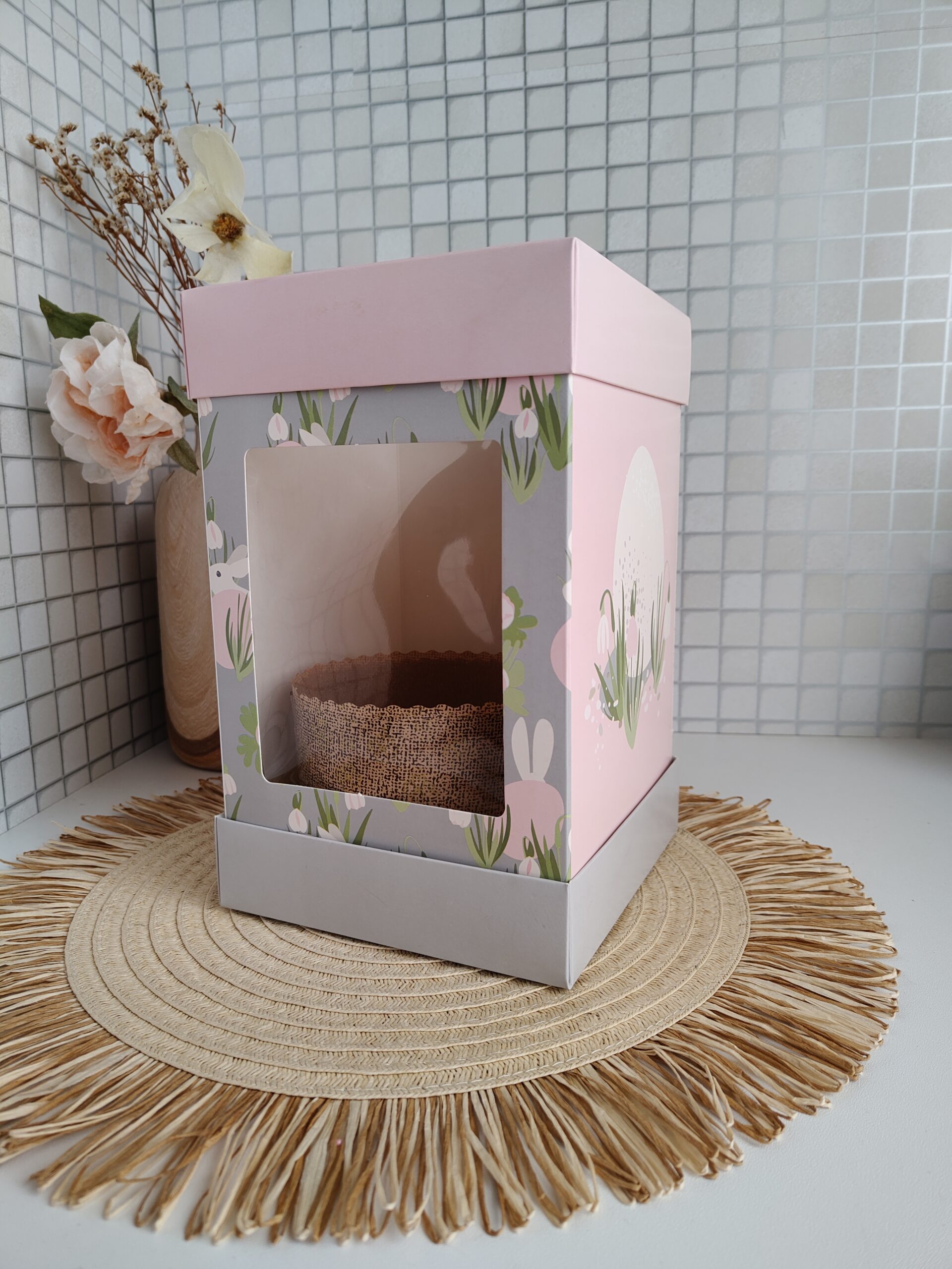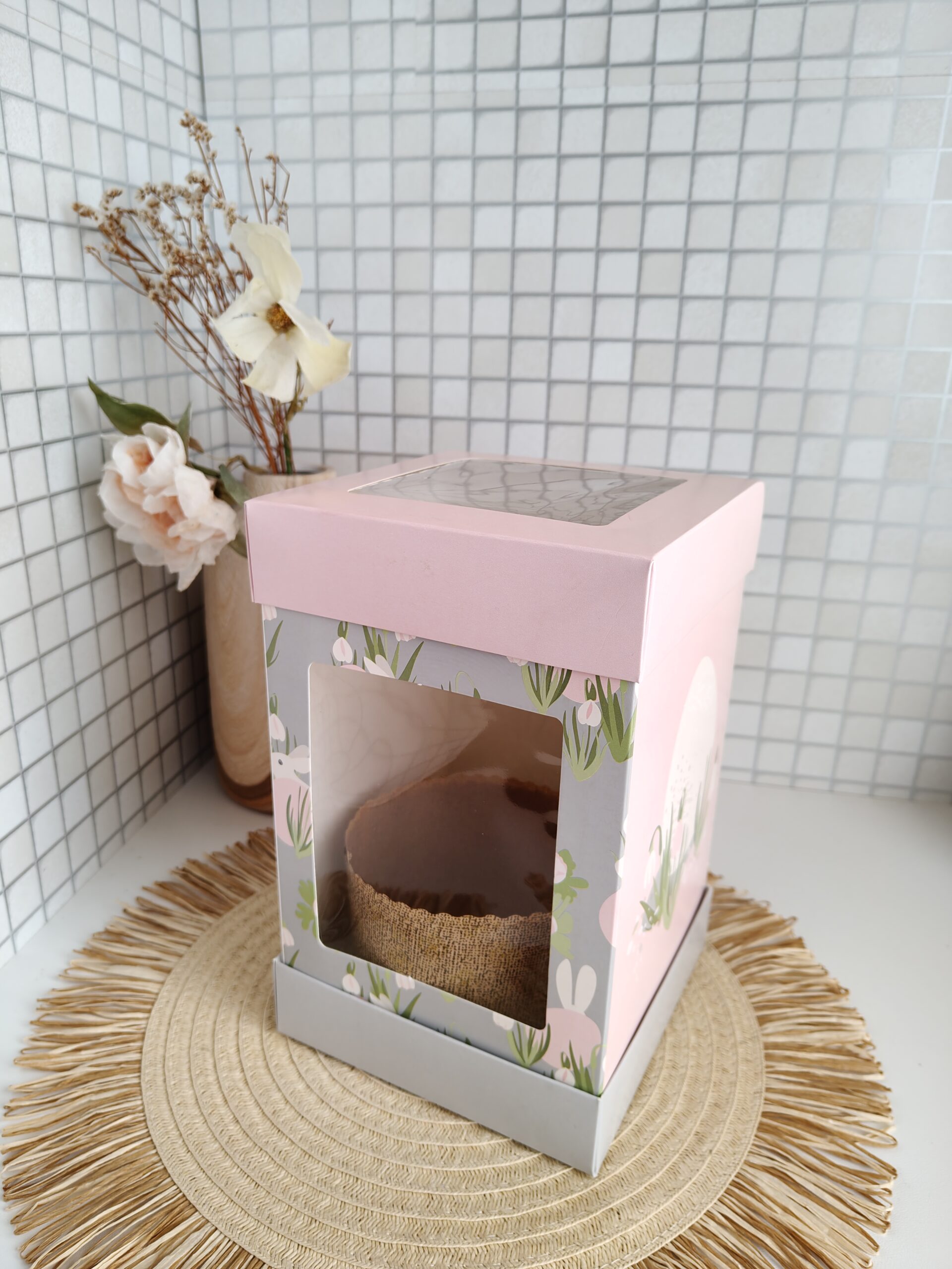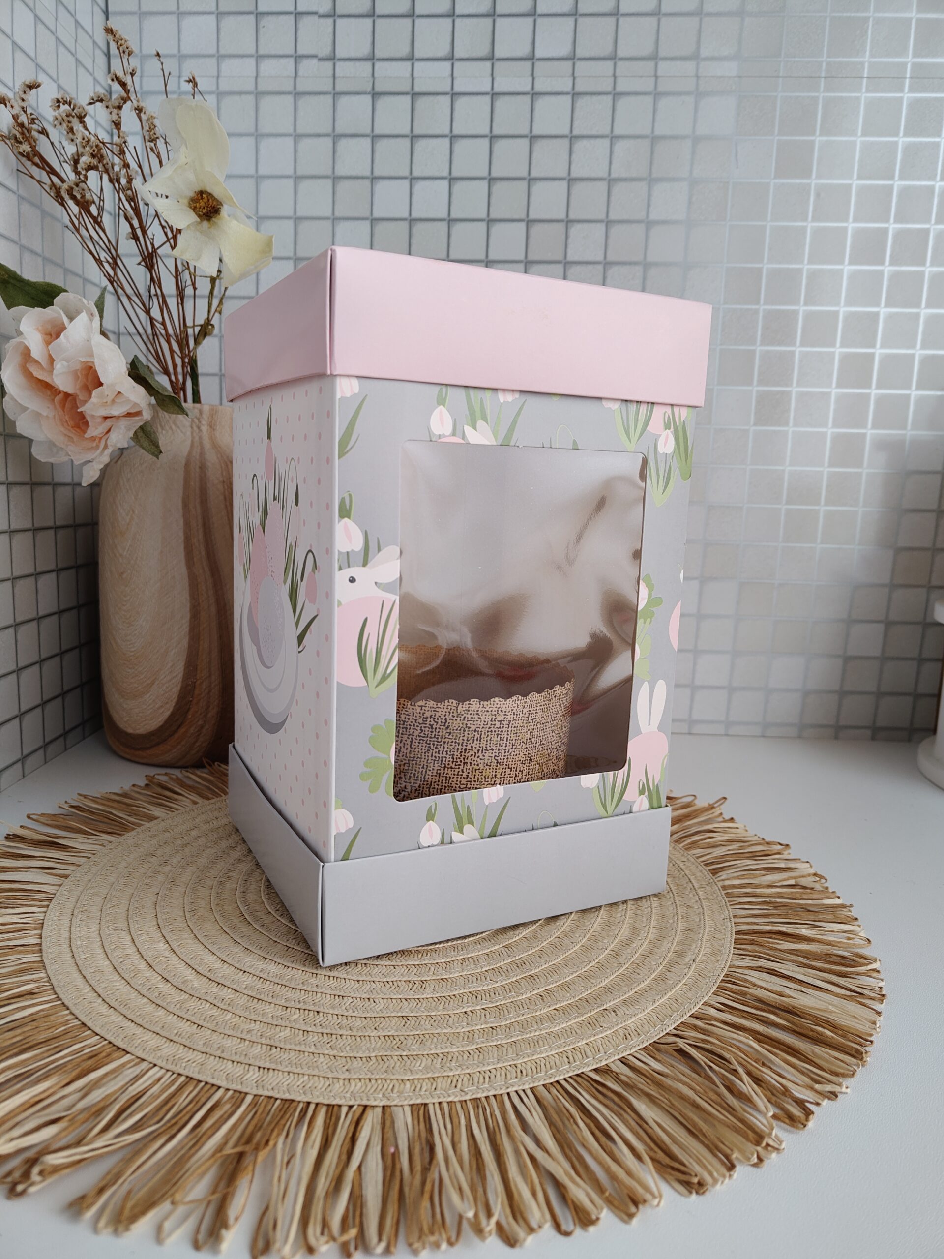 Pudełko prezentowe Wielkanocne 15x15x24 cm z nadrukiem i oknem