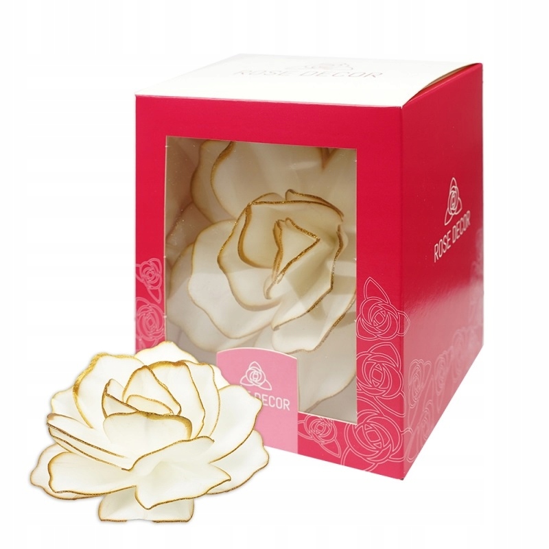 Róża Pastella Waflowa Złota Finezja to niezwykle elegancka dekoracja cukiernicza, która doda szyku każdemu wypiekowi. Wykonana z delikatnego, jadalnego opłatka, zachwyca złocistym połyskiem i perfekcyjnym odwzorowaniem kształtu płatków róży. Idealna do dekoracji tortów, ciast, tart czy deserów okolicznościowych.