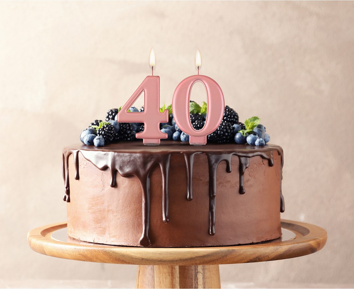 ŚWIECZKA CYFERKA 4, METALICZNA RÓŻOWO-ZŁOTA, B&C