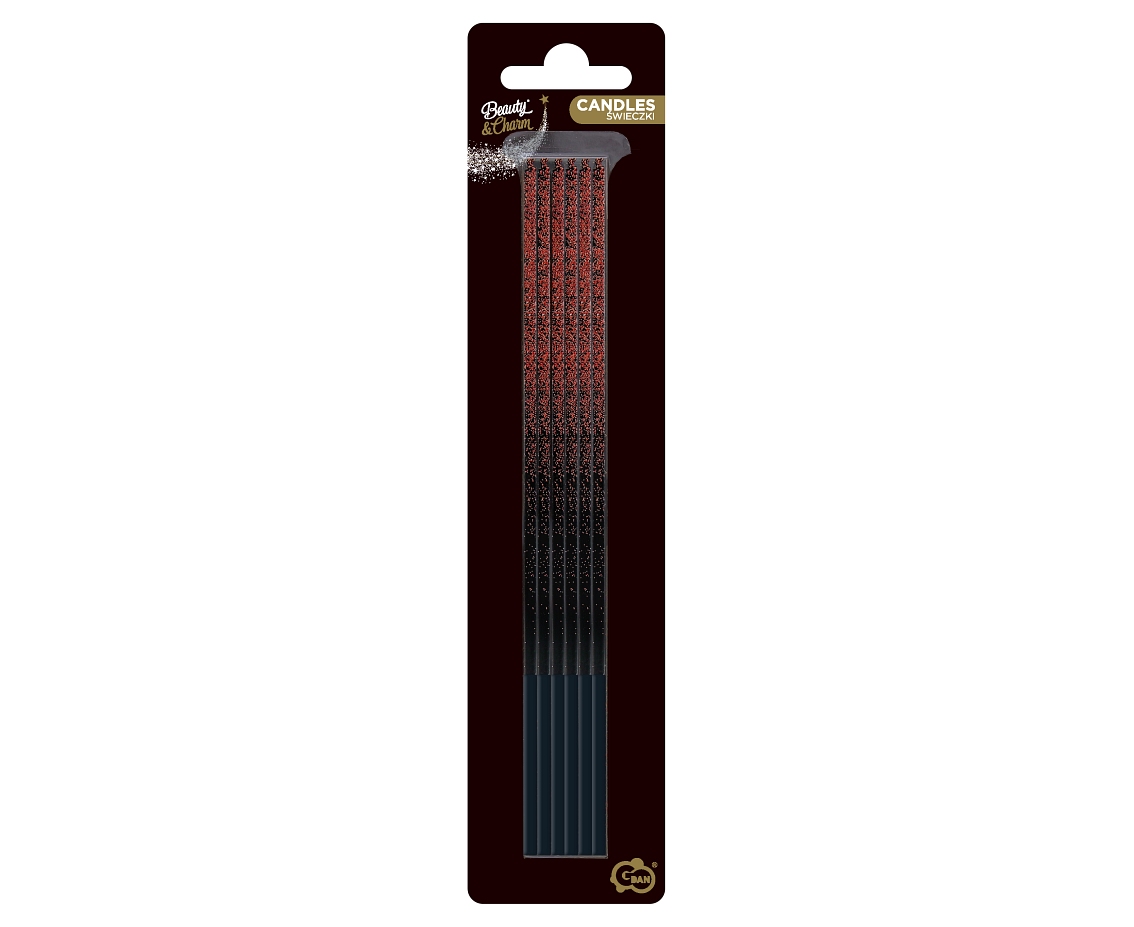 Świeczki B&C Ombre, czerwony brokat, 3x3x170mm, 6 szt.