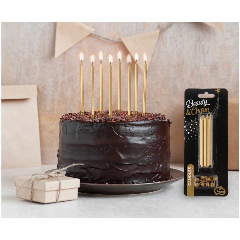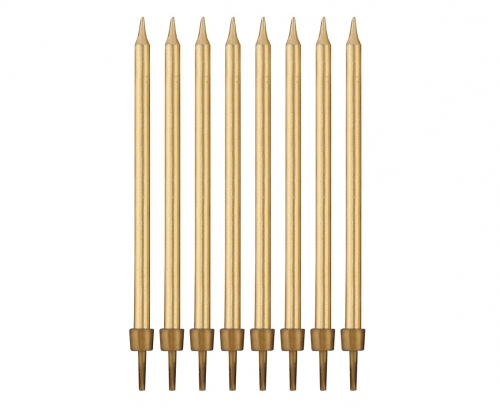 Świeczki urodzinowe z podstawkami, złote 8szt