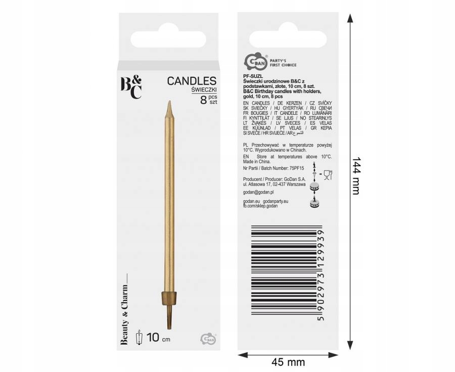 Świeczki urodzinowe złote, 10/10, 5 cm