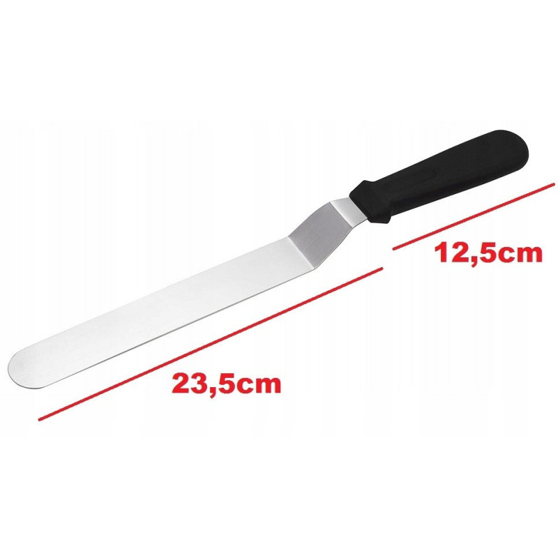Szpatułka cukiernicza/łopatka do ciast wygięta EBB151 to praktyczne narzędzie do nakładania, rozsmarowywania i wygładzania kremów oraz mas na ciastach i tortach.