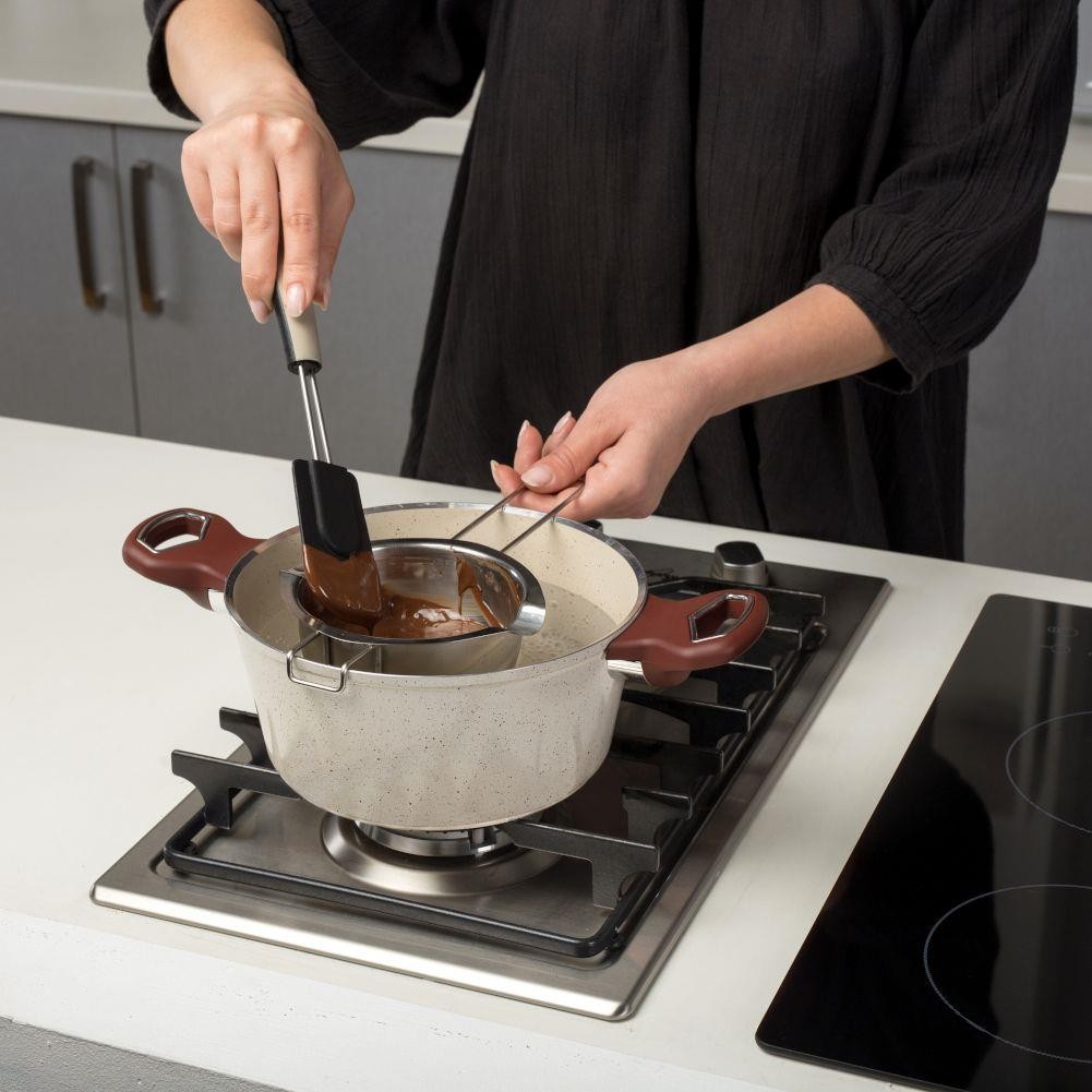 Szpatułka kuchenna silikonowa MISTY o długości 25,5 cm to niezastąpione narzędzie w Twojej kuchni. Wykonana z wysokiej jakości silikonu odpornego na wysokie temperatury, pozwala na łatwe mieszanie, przewracanie i nakładanie potraw bez ryzyka zarysowania naczyń. Ergonomiczny, wygodny uchwyt zapewnia pewny chwyt, a elastyczna końcówka doskonale dopasowuje się do różnych powierzchni, ułatwiając pracę podczas gotowania i pieczenia. Szpatułka MISTY to trwały i praktyczny dodatek, który sprawdzi się zarówno w codziennym użytkowaniu, jak i podczas specjalnych okazji kulinarnych. Idealna do delikatnych mas, ciast i sosów. Łatwa do czyszczenia, nadaje się do mycia w zmywarce.