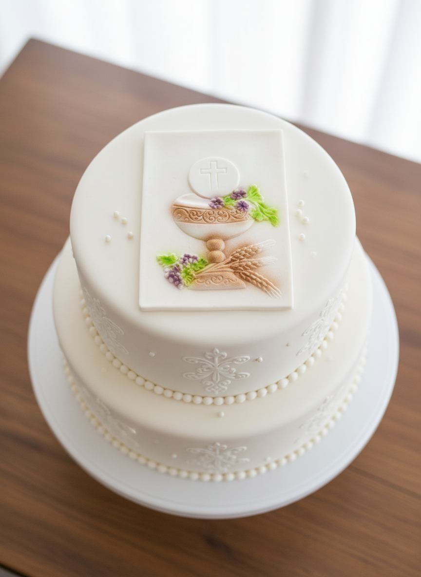 Elegancka tabliczka cukrowa z odciskanym wzorem komunijnym dla chłopca. Idealna jako słodki upominek na Pierwszą Komunię Świętą – ręcznie wykonana z najwyższej jakości cukru, z precyzyjnym nadrukiem motywu chłopca w stroju komunijnym, krzyża i hostii. Średnica ok. 10-15 cm. Pakowana indywidualne pudełko. Perfekcyjny dodatek do cukierków na przyjęciu komunijnym!