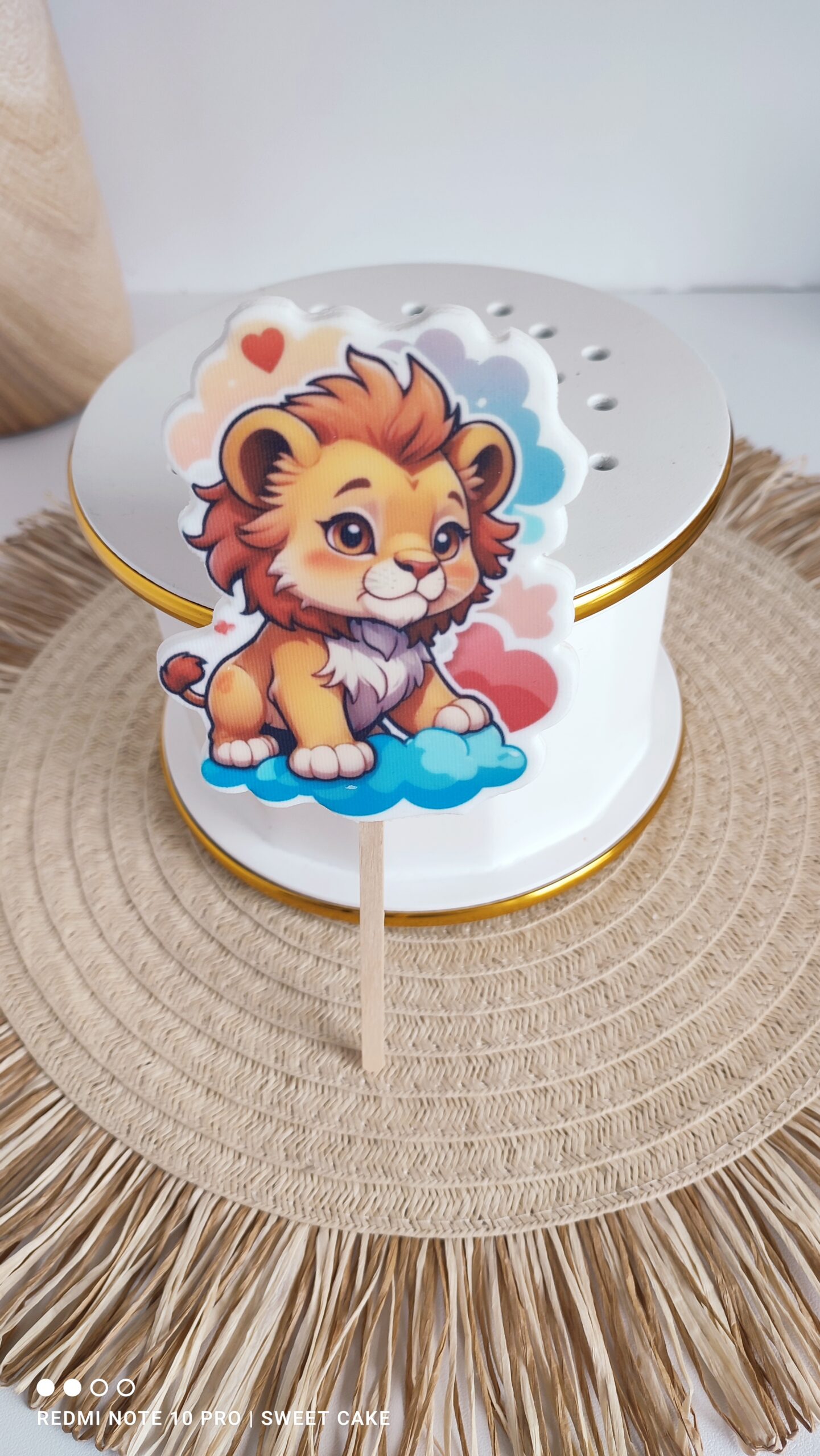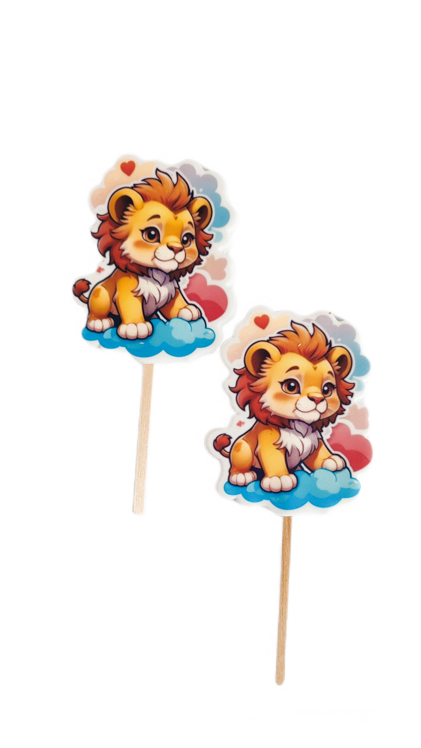 Topper/Tabliczka cukrowy 2D „LEW” 1 szt nadrukowany na masie cukrowej z drewnianym patyczkiem jest bardzo dobrym i tańszym zamiennikiem figurek cukrowych i opłatka na tort