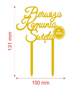 Topper akryl złoty PIERWSZA KOMUNIA ŚWIĘTA #2 – 1 szt