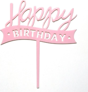 Topper Akrylowy różowy Happy Birthday 1 szt