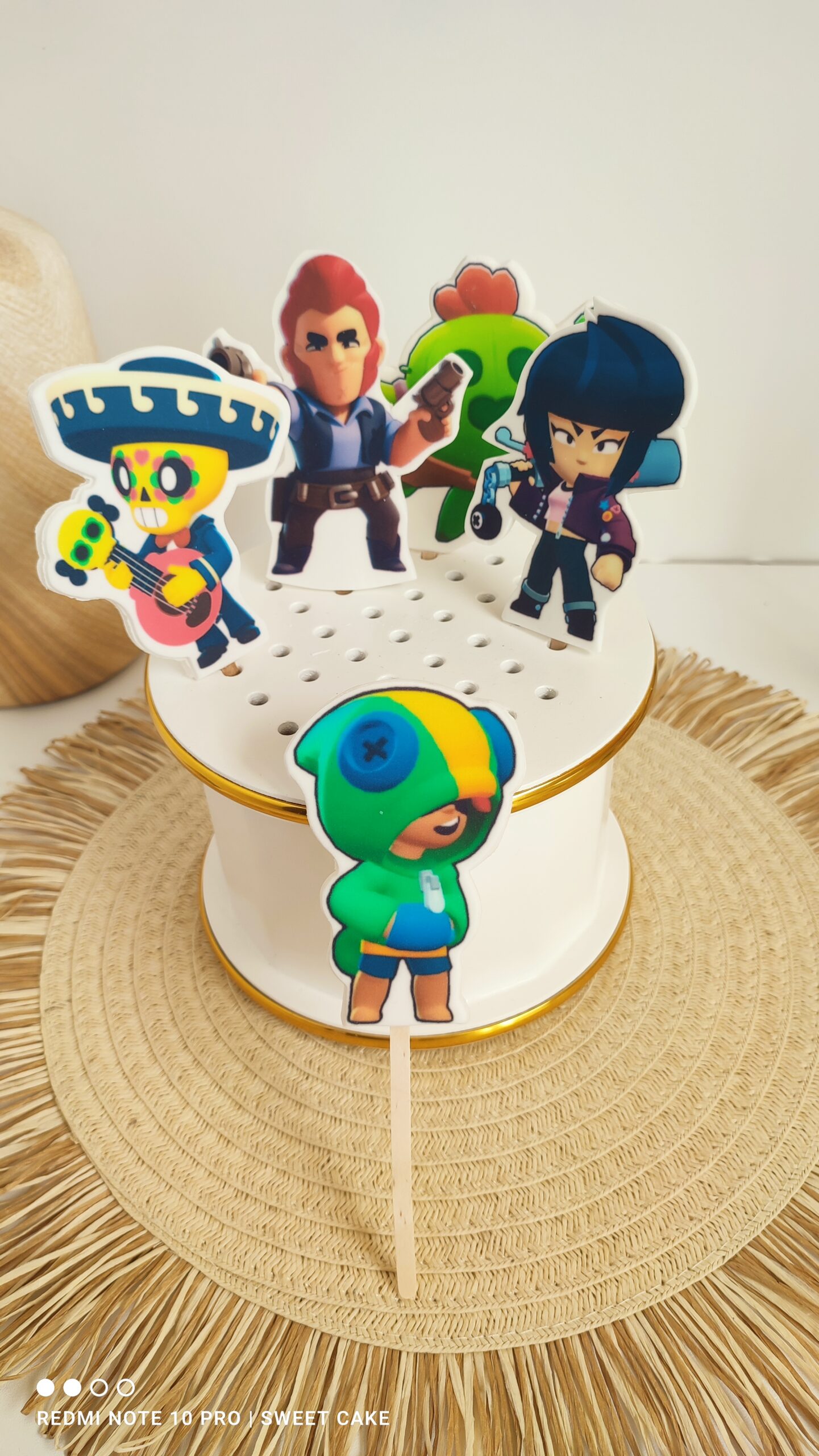 Topper cukrowy/lizak 2D ” Brawl Stars PACO” 1 szt nadrukowany na masie cukrowej z drewnianym patyczkiem jest bardzo dobrym i tańszym zamiennikiem figurek cukrowych i opłatka na tort