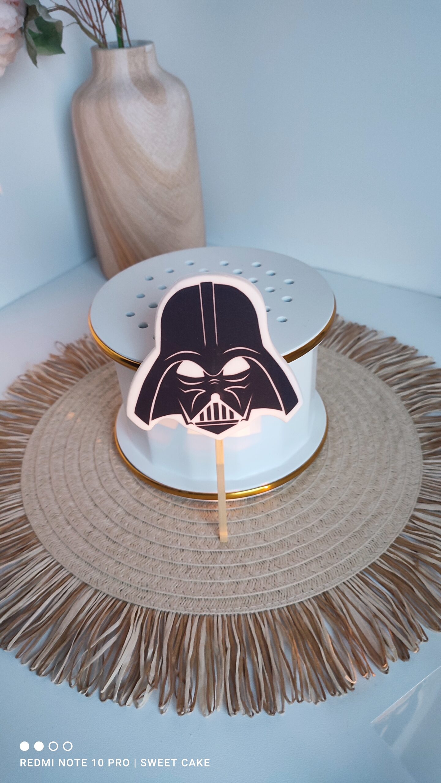 DeKoracja – Topper/Tabliczka cukrowy 2D ” VADER” 1 szt nadrukowany na masie cukrowej z drewnianym patyczkiem jest bardzo dobrym i tańszym zamiennikiem figurek cukrowych i opłatka na tort