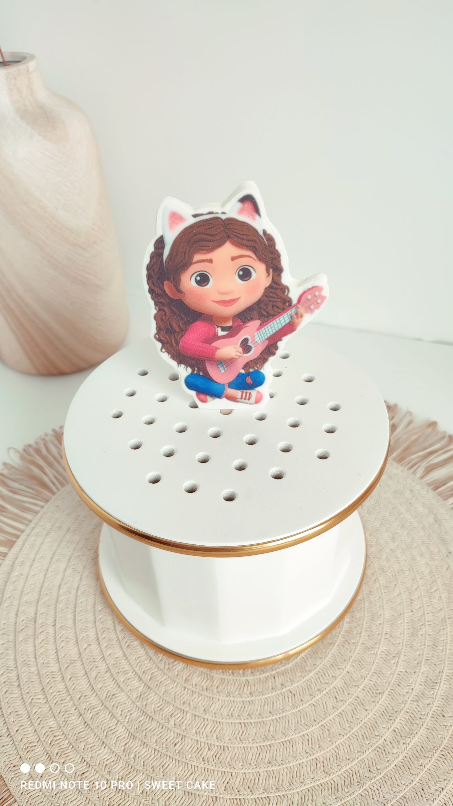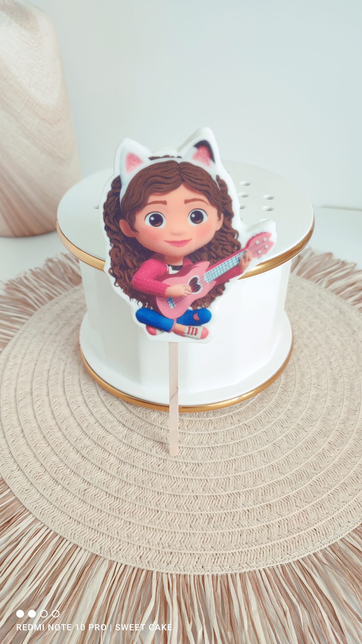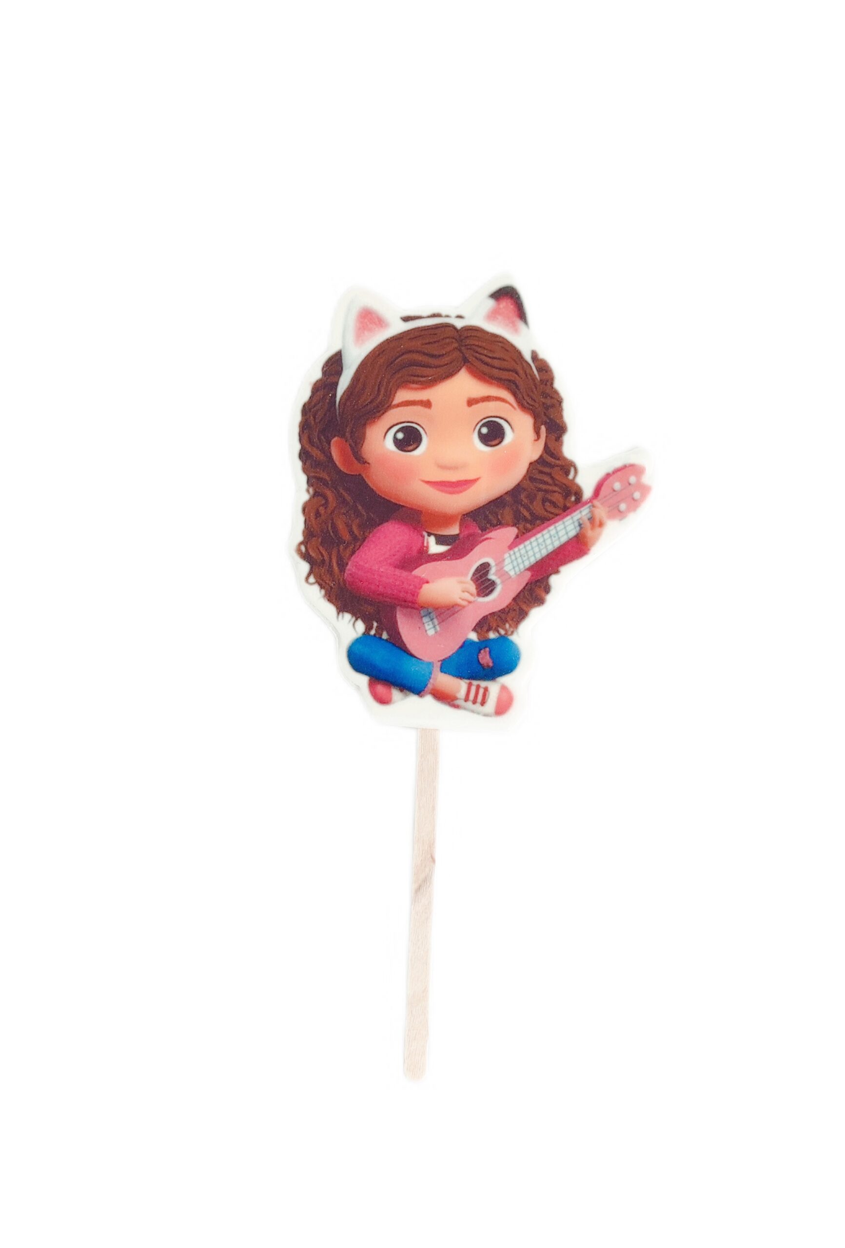 Topper cukrowy/lizak 2D „GABI z gitarą „2”” 1 szt nadrukowany na masie cukrowej z drewnianym patyczkiem jest bardzo dobrym i tańszym zamiennikiem figurek cukrowych i opłatka na tort