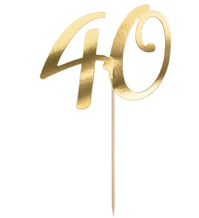 Topper LICZBA papierowy na tort 40 urodziny ,złoty 11x h21 cm