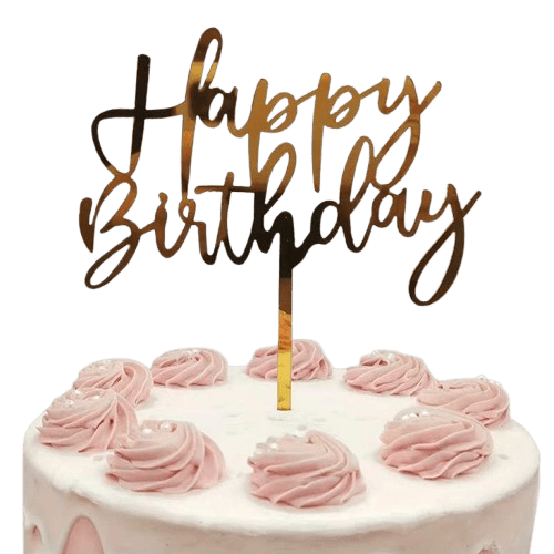 Topper na tort Happy Birthday na patyku 1 szt złoty