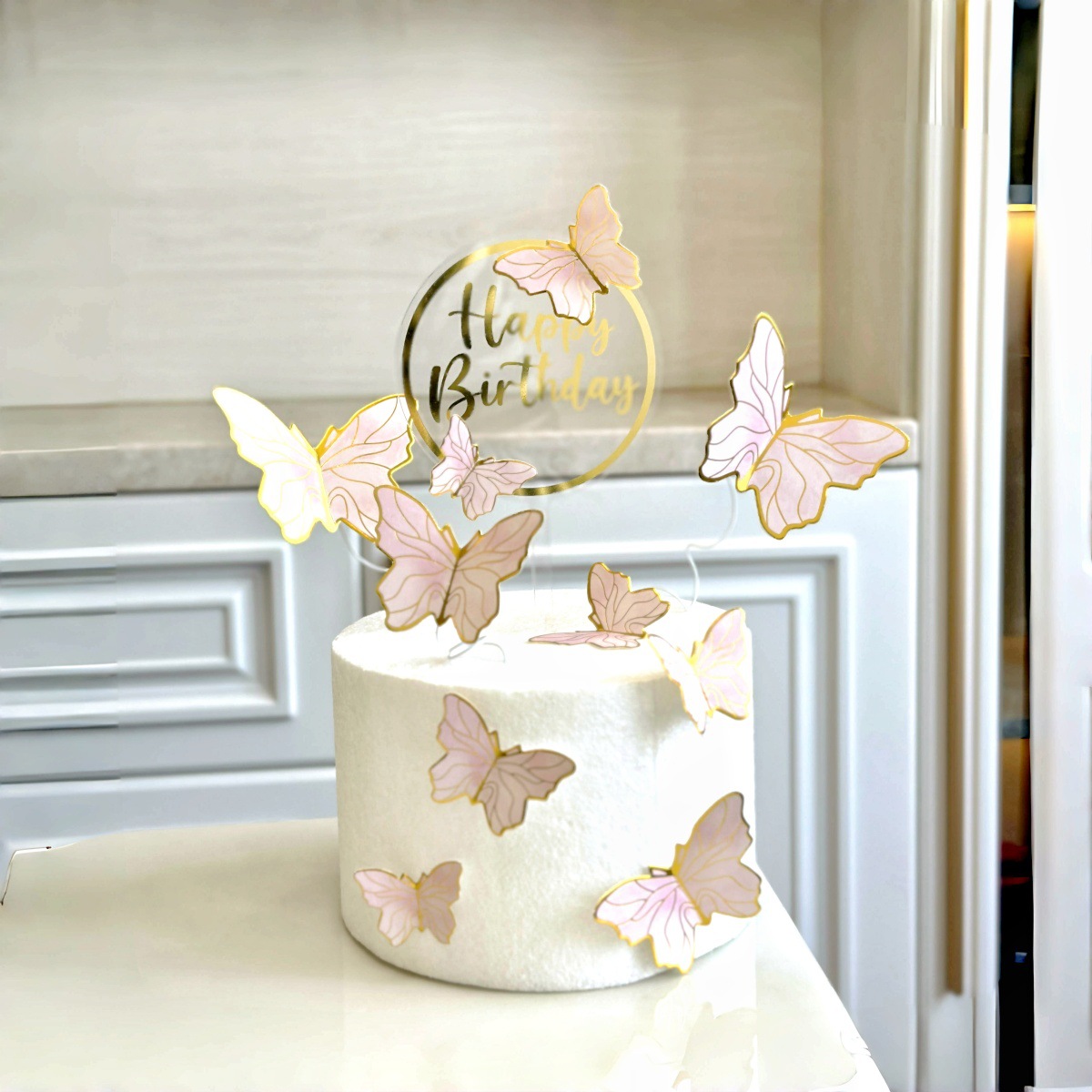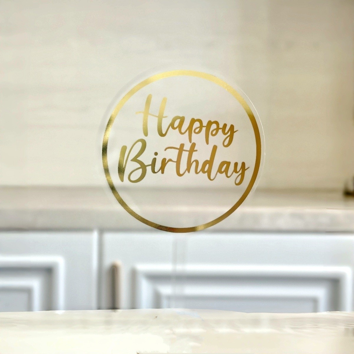 Topper na tort, Happy Birthday, kółko z złotym nadrukiem