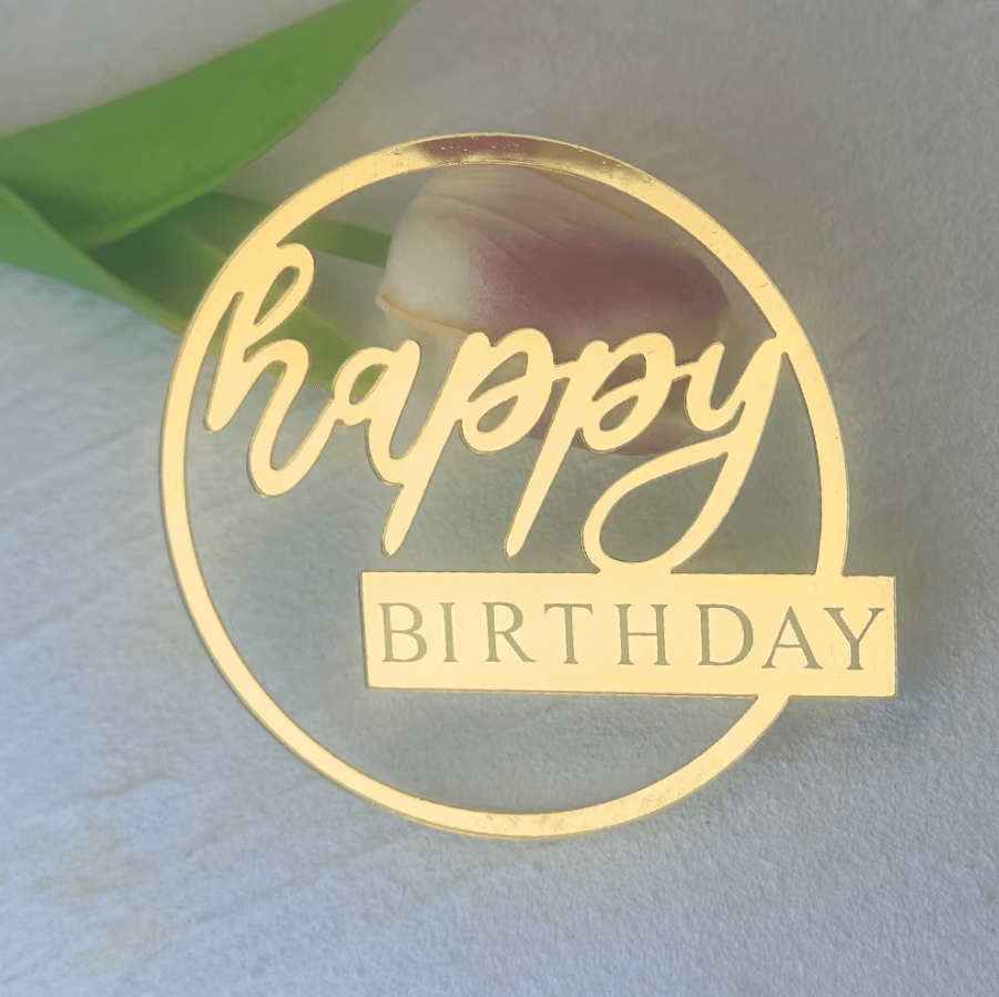 Topper na tort Happy Birthday w kółku 1 szt 9x9cm