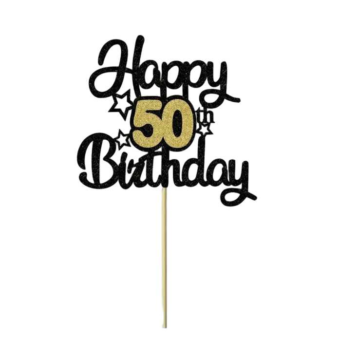 Topper na ciasto, tort Happy Birthday 50 urodziny, błyszczący czarny