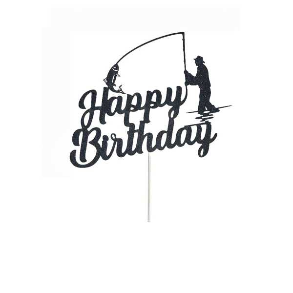 Topper na ciasto, tort Happy Birthday dla wędkarza Czarny