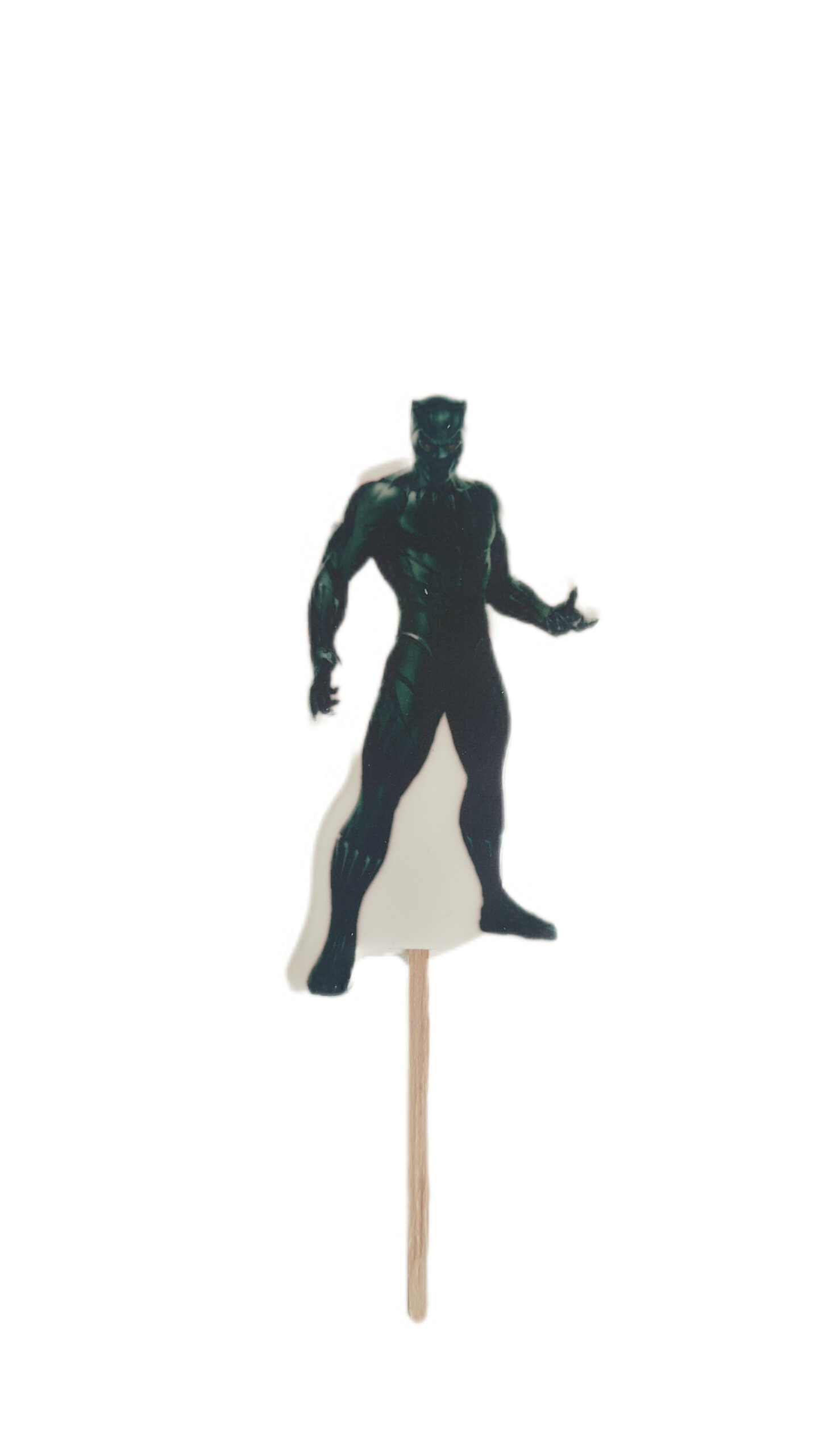 Topper cukrowy/lizak 2D ” AWENGERS BLACK” 1 szt nadrukowany na masie cukrowej z drewnianym patyczkiem jest bardzo dobrym i tańszym zamiennikiem figurek cukrowych i opłatka na tort