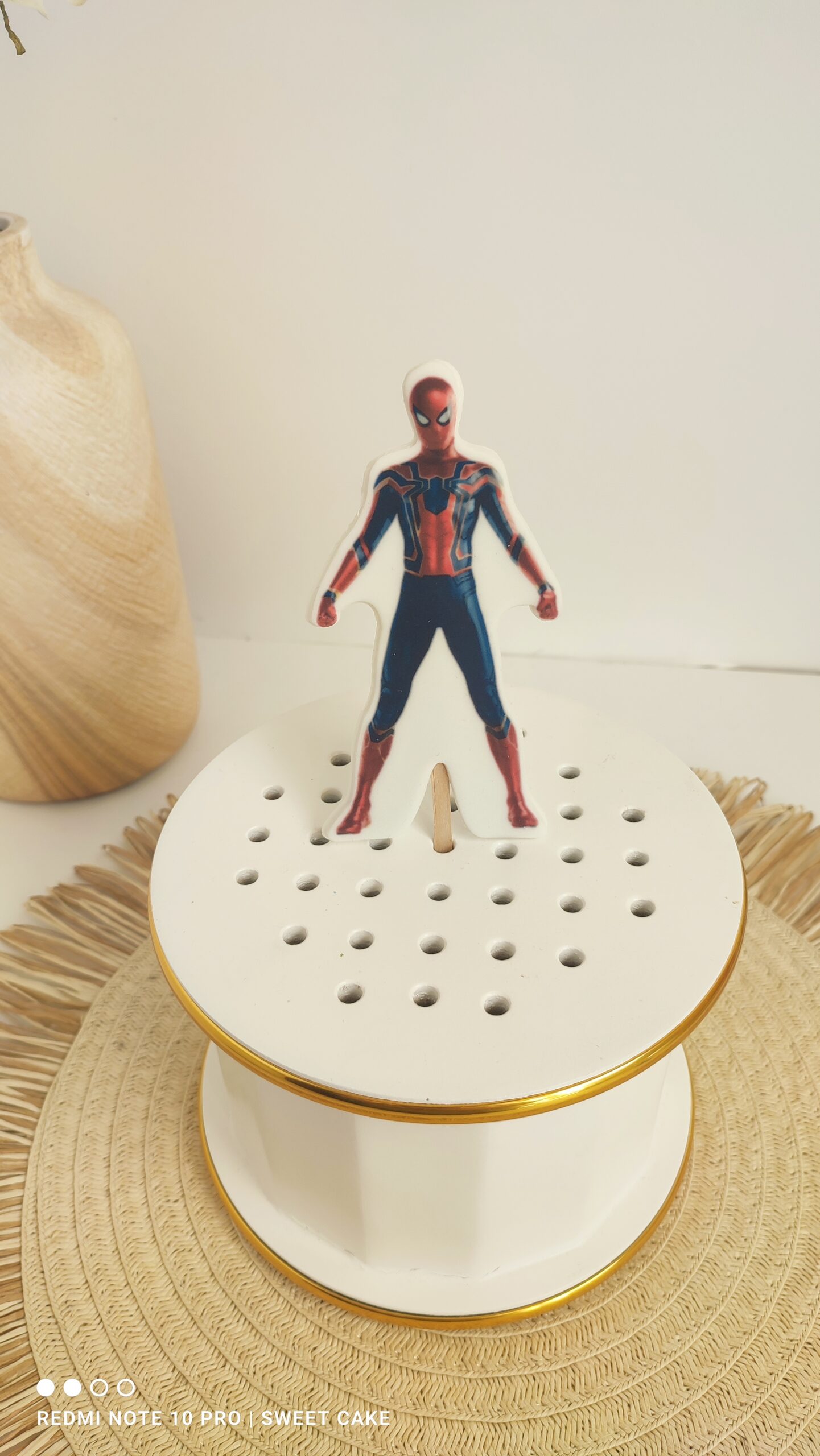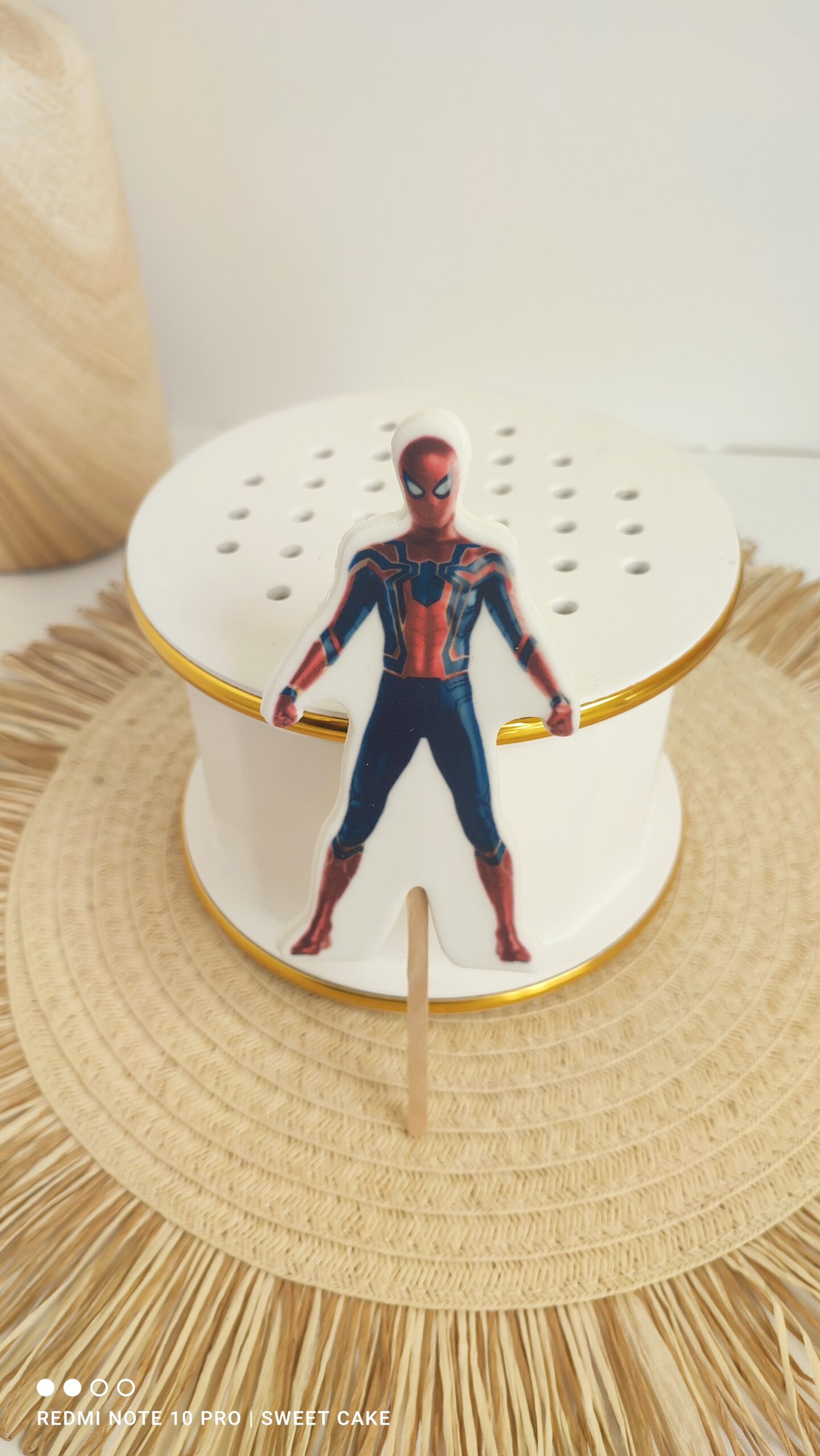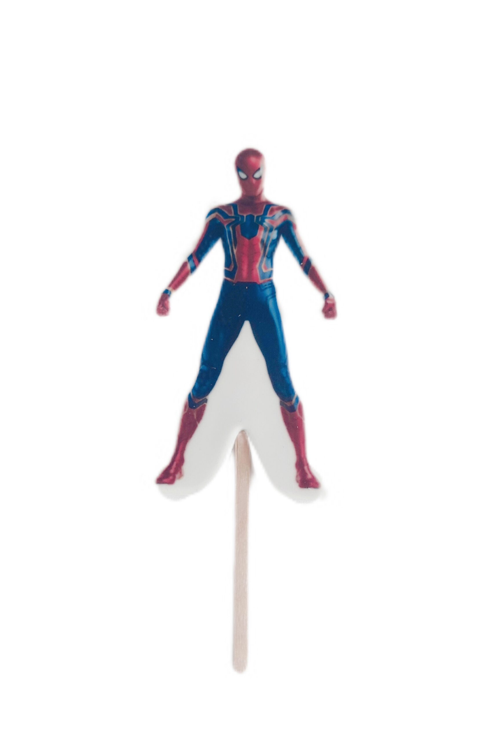 Topper cukrowy/lizak 2D ” AWENGERS SPIDERMEN” 1 szt nadrukowany na masie cukrowej z drewnianym patyczkiem jest bardzo dobrym i tańszym zamiennikiem figurek cukrowych i opłatka na tort