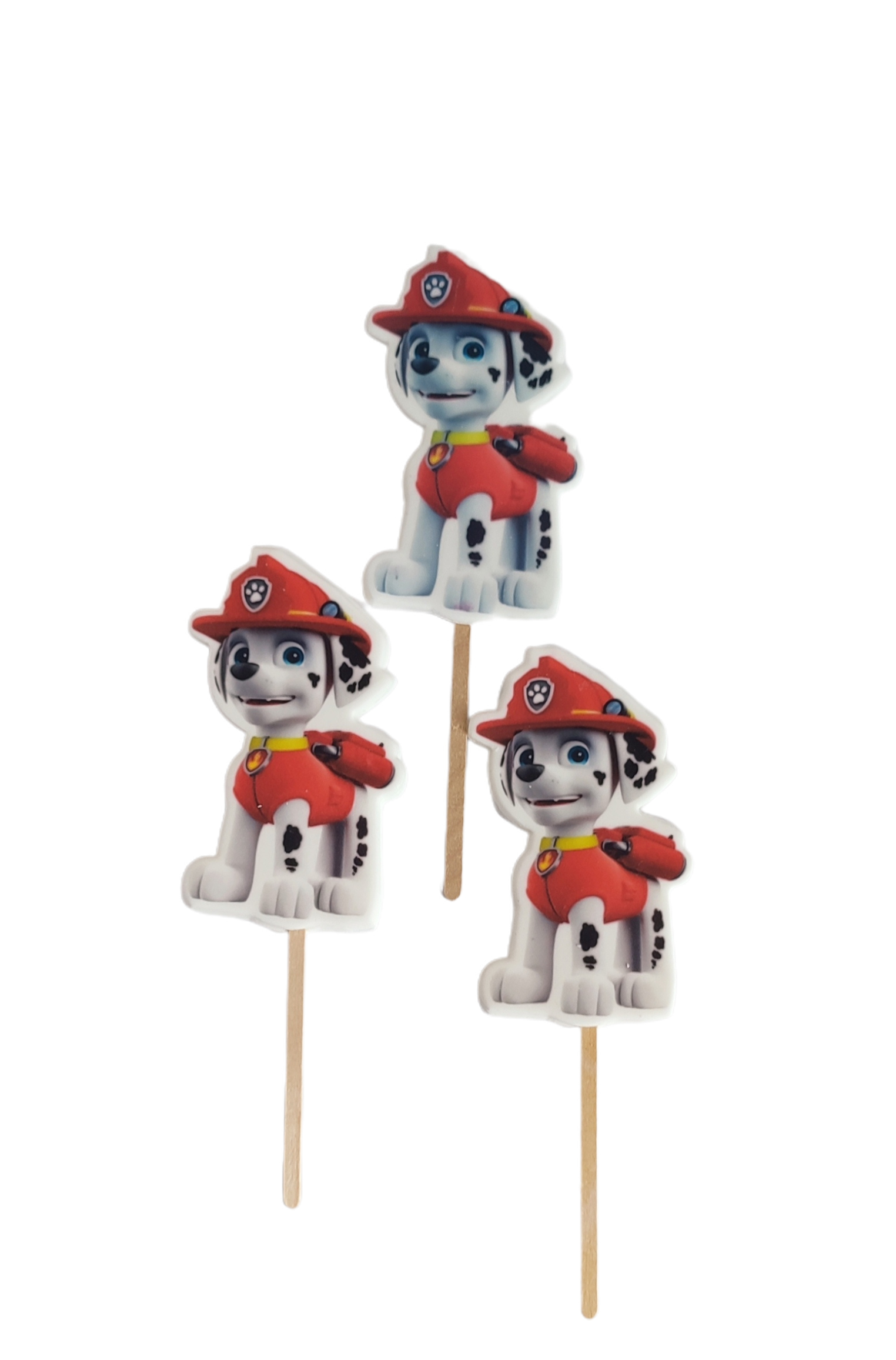 Topper cukrowy/lizak 2D ” DOG MARSHAL” 1 szt nadrukowany na masie cukrowej z drewnianym patyczkiem jest bardzo dobrym i tańszym zamiennikiem figurek cukrowych i opłatka na tort