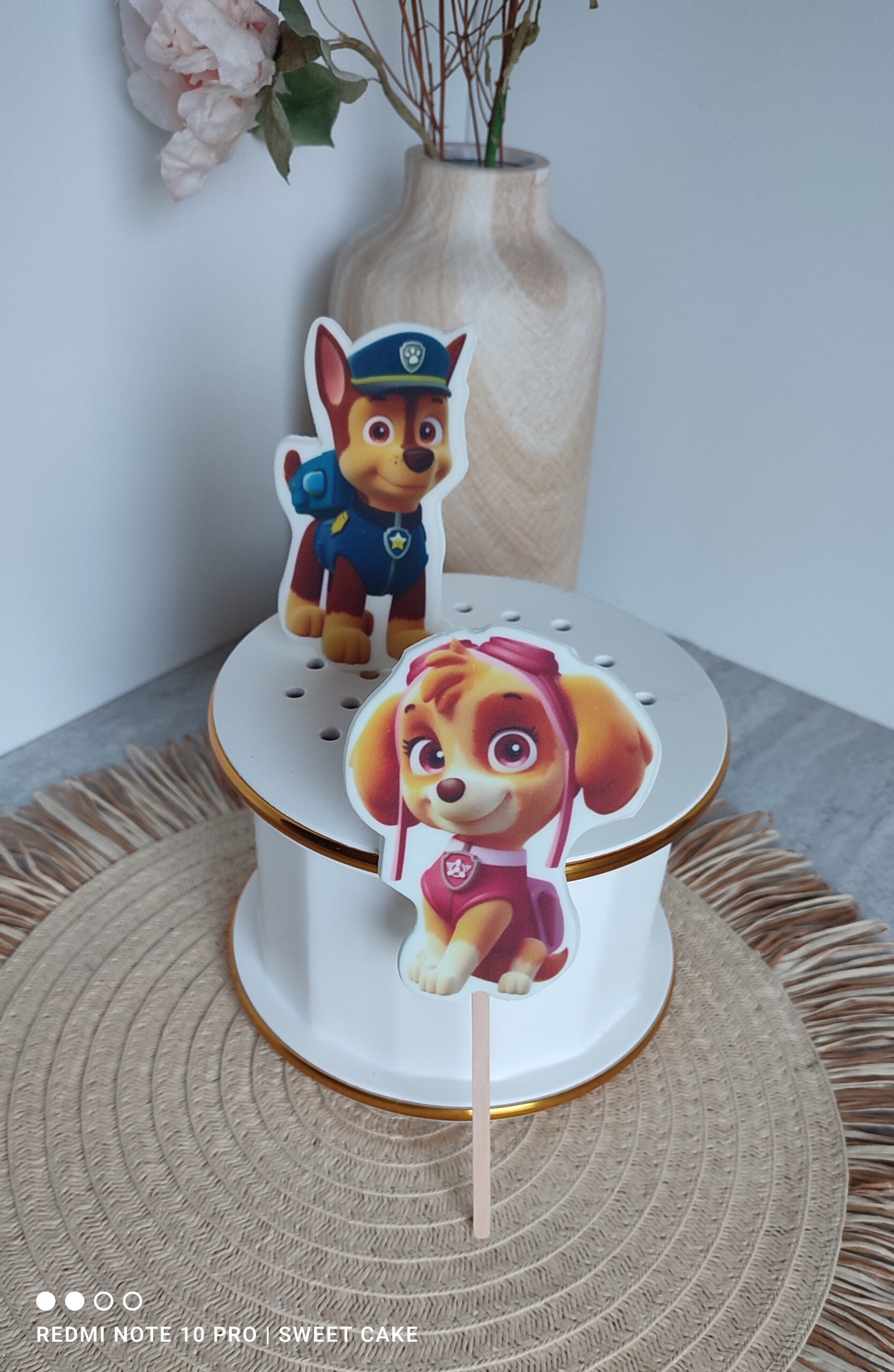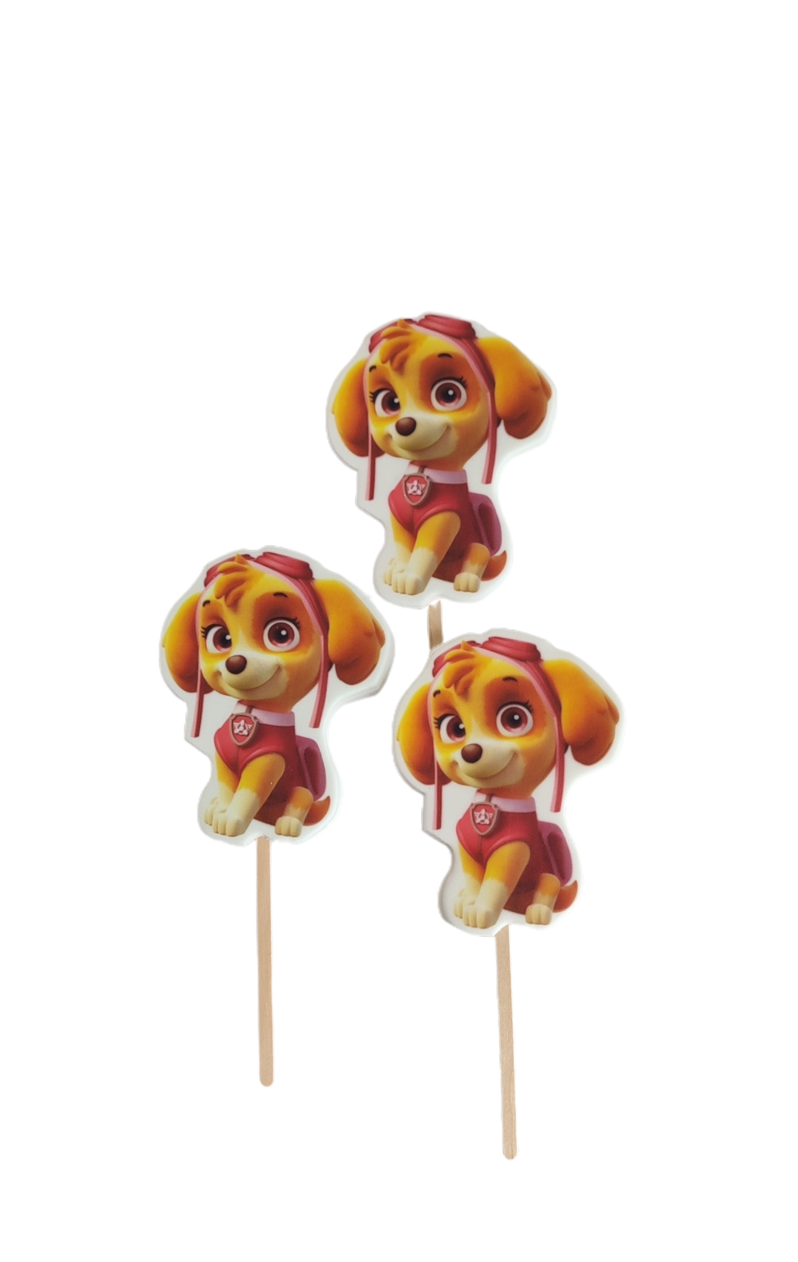 Topper cukrowy/lizak 2D „DOG SKYE” 1 szt nadrukowany na masie cukrowej z drewnianym patyczkiem jest bardzo dobrym i tańszym zamiennikiem figurek cukrowych i opłatka na tort