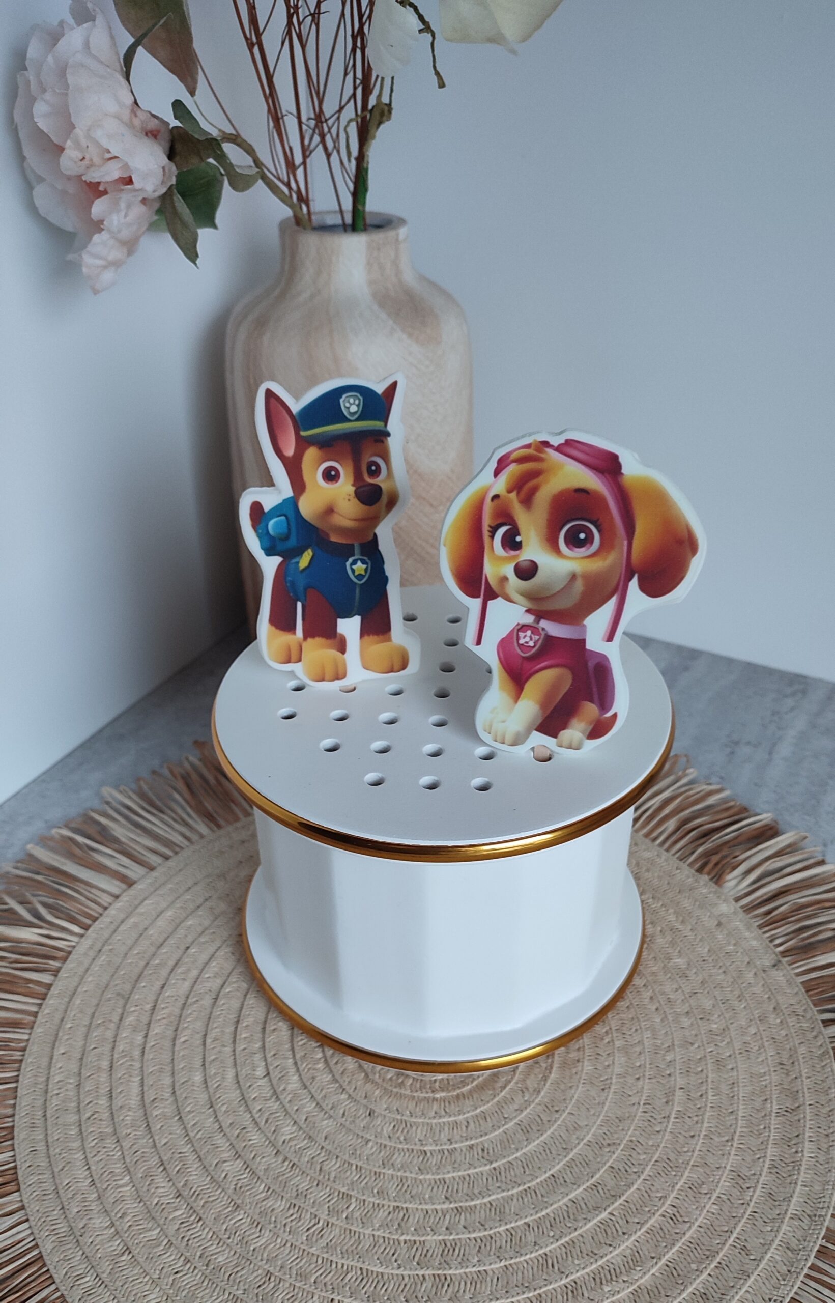 Topper cukrowy/lizak 2D „DOG SKYE” to wyjątkowa dekoracja na tort, która w prosty i efektowny sposób podkreśli charakter każdej uroczystości. Nadrukowany na masie cukrowej z dokładnością i estetyką, zamocowany na solidnym drewnianym patyczku, jest idealnym tańszym zamiennikiem tradycyjnych figurek cukrowych czy opłatków.