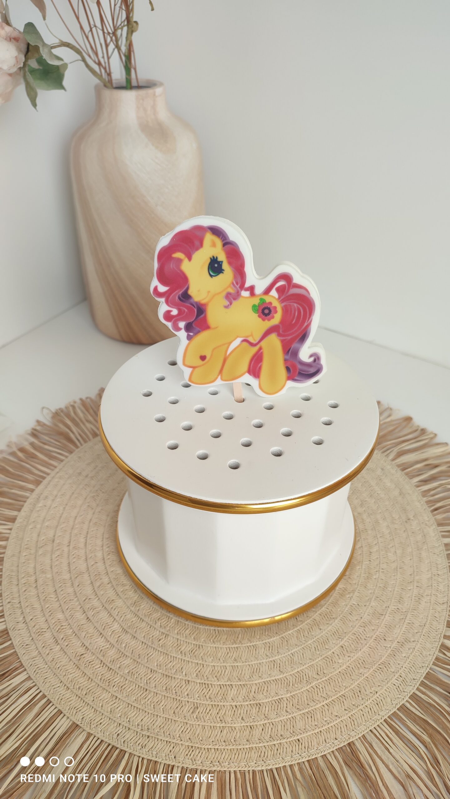 Topper cukrowy/lizak KUCYK PONI „4” to wyjątkowa dekoracja na tort, która w prosty i efektowny sposób podkreśli charakter każdej uroczystości. Nadrukowany na masie cukrowej z dokładnością i estetyką, zamocowany na solidnym drewnianym patyczku, jest idealnym tańszym zamiennikiem tradycyjnych figurek cukrowych czy opłatków.