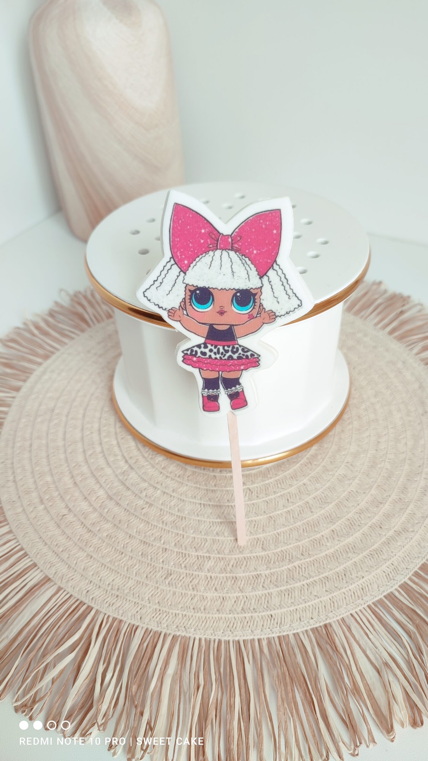 Topper cukrowy/lizak 2D „LOLKA 1” to wyjątkowa dekoracja na tort, która w prosty i efektowny sposób podkreśli charakter każdej uroczystości. Nadrukowany na masie cukrowej z dokładnością i estetyką, zamocowany na solidnym drewnianym patyczku, jest idealnym tańszym zamiennikiem tradycyjnych figurek cukrowych czy opłatków.