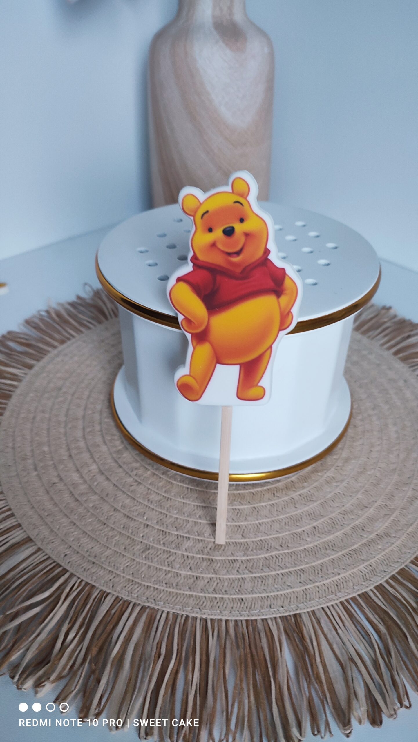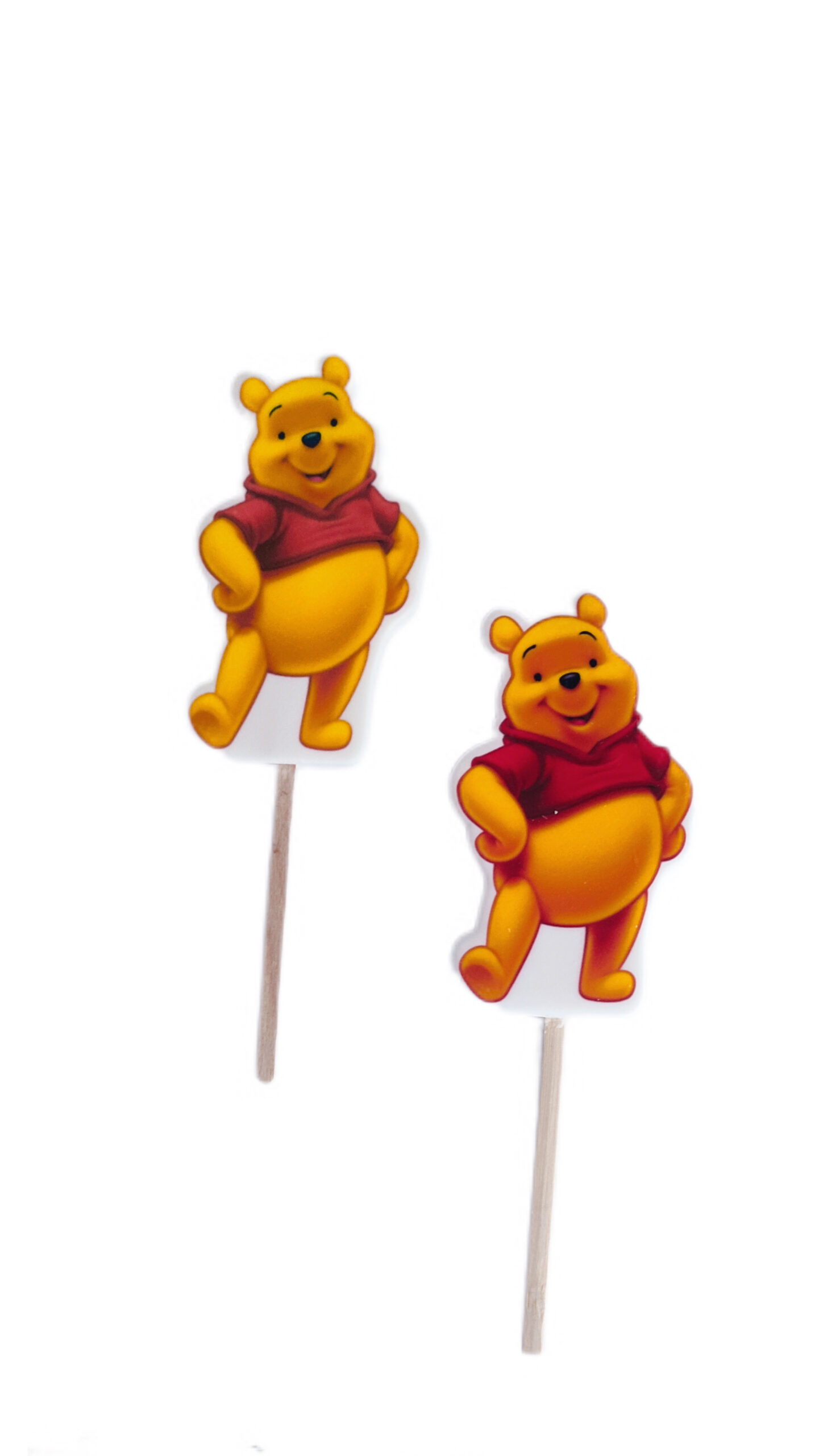 Topper cukrowy/lizak 2D „PUCHATEK KUBUS” 1 szt nadrukowany na masie cukrowej z drewnianym patyczkiem jest bardzo dobrym i tańszym zamiennikiem figurek cukrowych i opłatka na tort