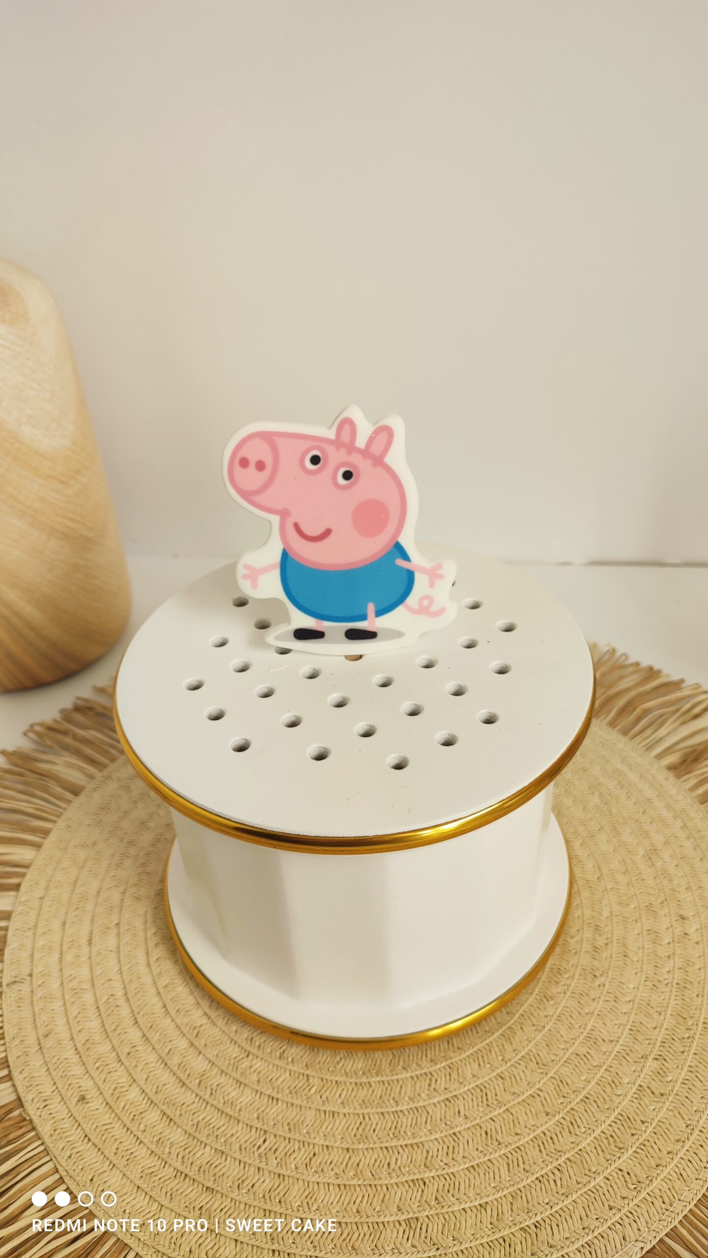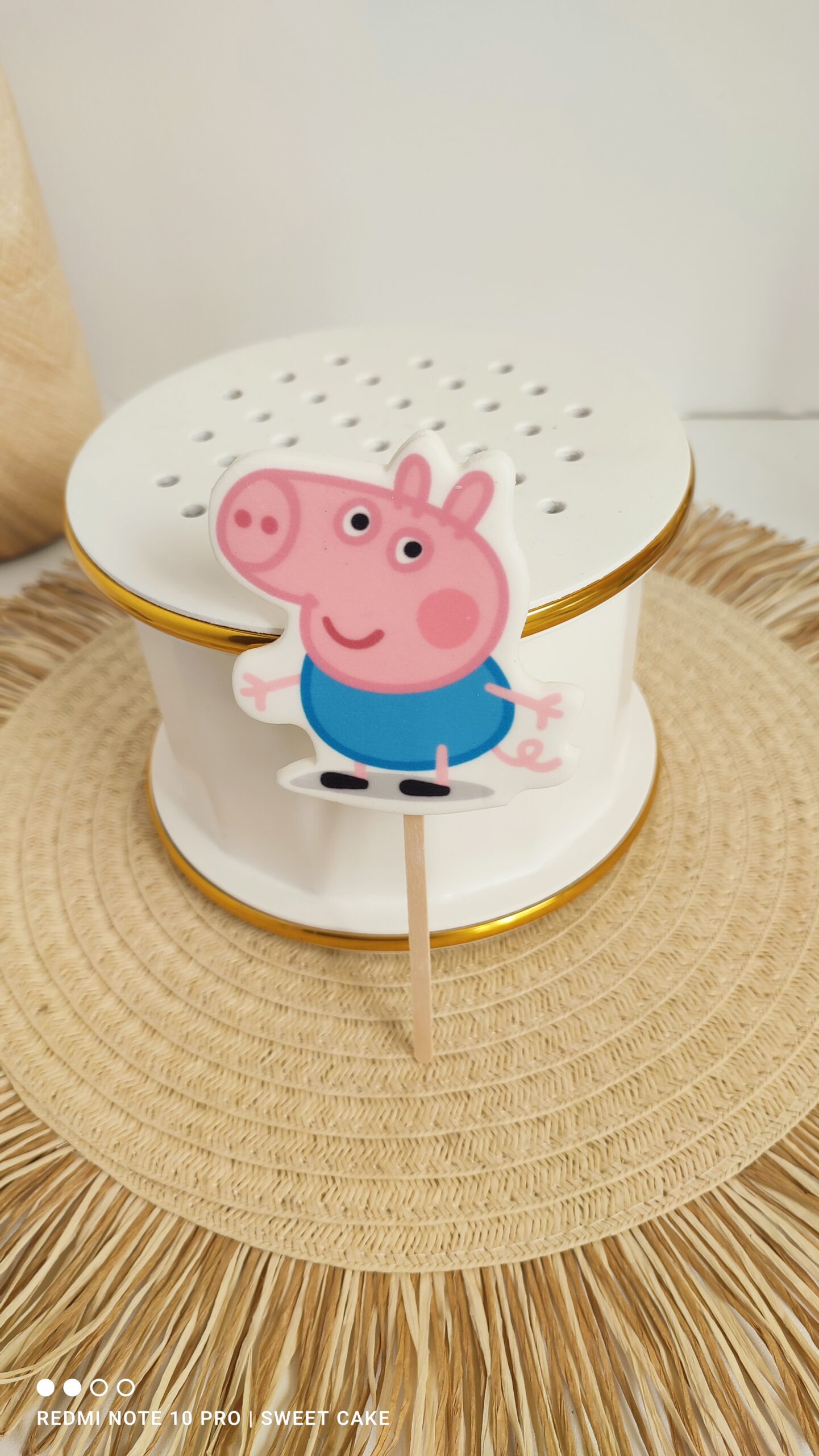 Topper cukrowy/lizak 2D „”ŚWINKA GEORGE” to wyjątkowa dekoracja na tort, która w prosty i efektowny sposób podkreśli charakter każdej uroczystości. Nadrukowany na masie cukrowej z dokładnością i estetyką, zamocowany na solidnym drewnianym patyczku, jest idealnym tańszym zamiennikiem tradycyjnych figurek cukrowych czy opłatków.