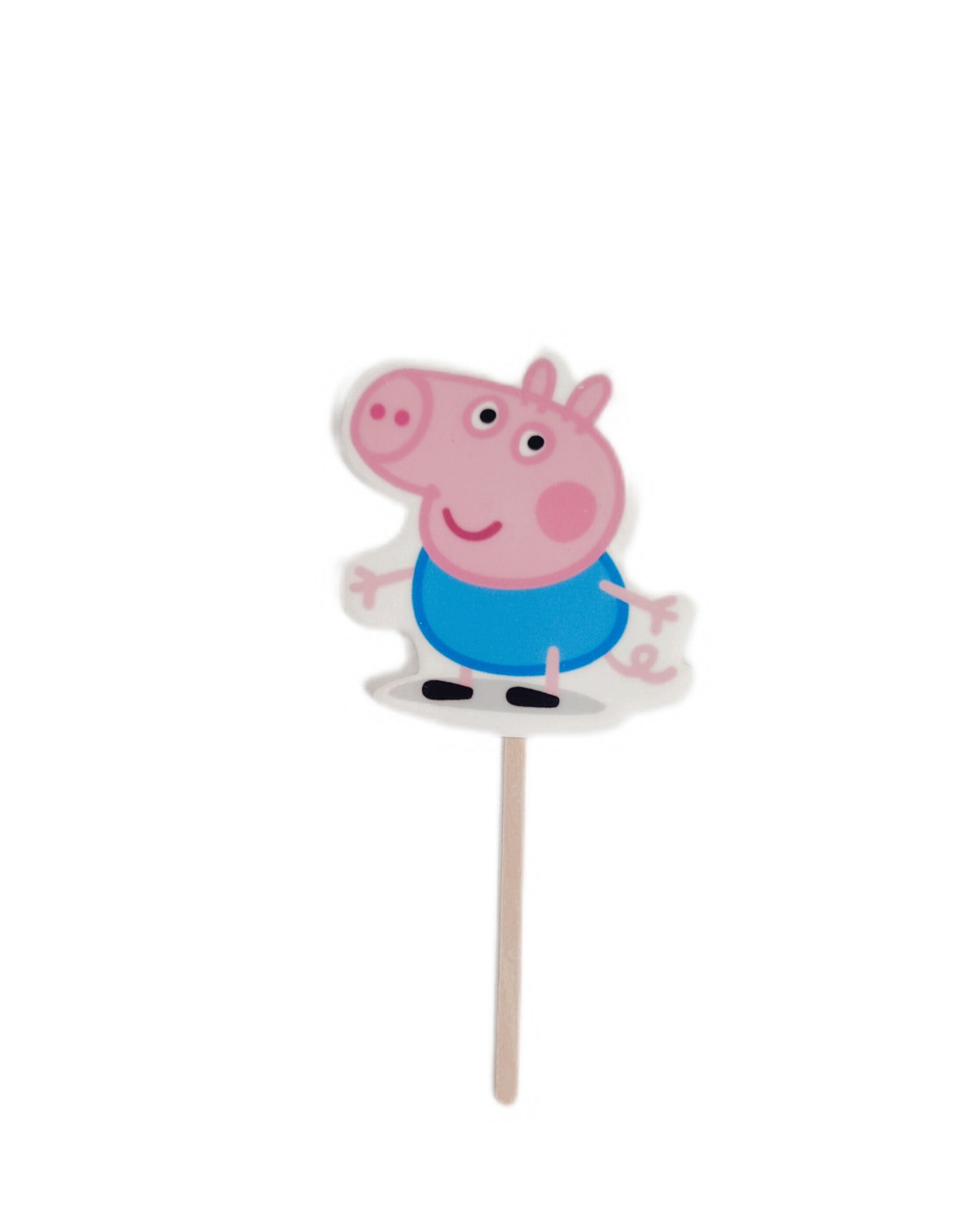 Topper cukrowy/lizak 2D ” „ŚWINKA GEORGE” 1 szt nadrukowany na masie cukrowej z drewnianym patyczkiem jest bardzo dobrym i tańszym zamiennikiem figurek cukrowych i opłatka na tort