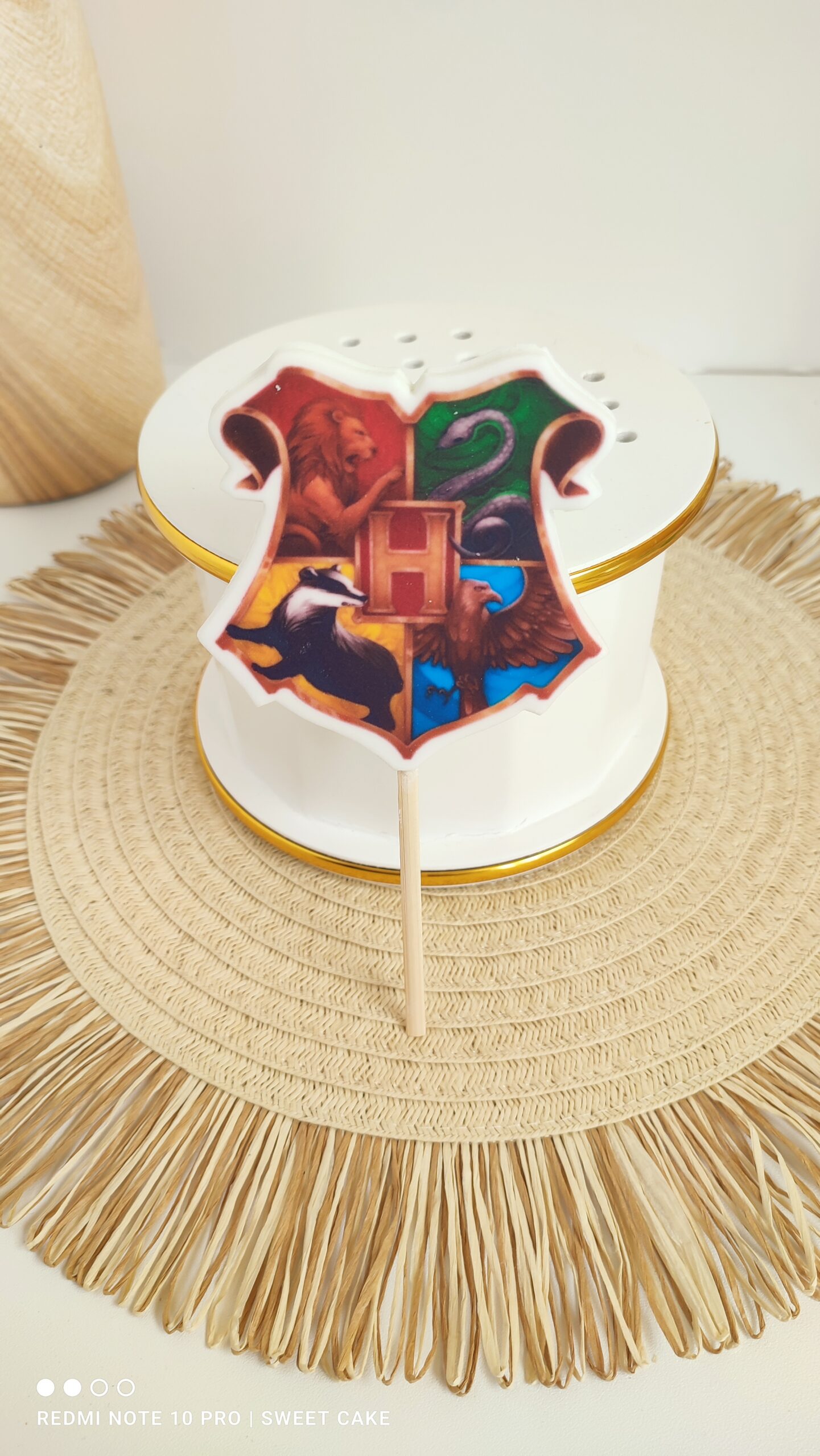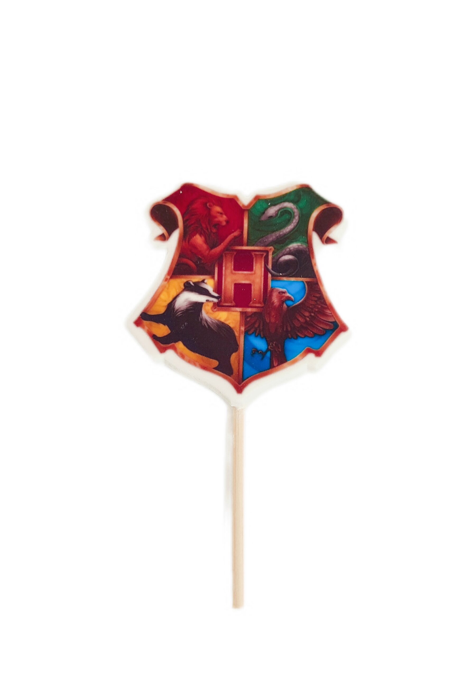 Topper cukrowy/lizak 2D ” „HOGWARTS ” 1 szt nadrukowany na masie cukrowej z drewnianym patyczkiem jest bardzo dobrym i tańszym zamiennikiem figurek cukrowych i opłatka na tort