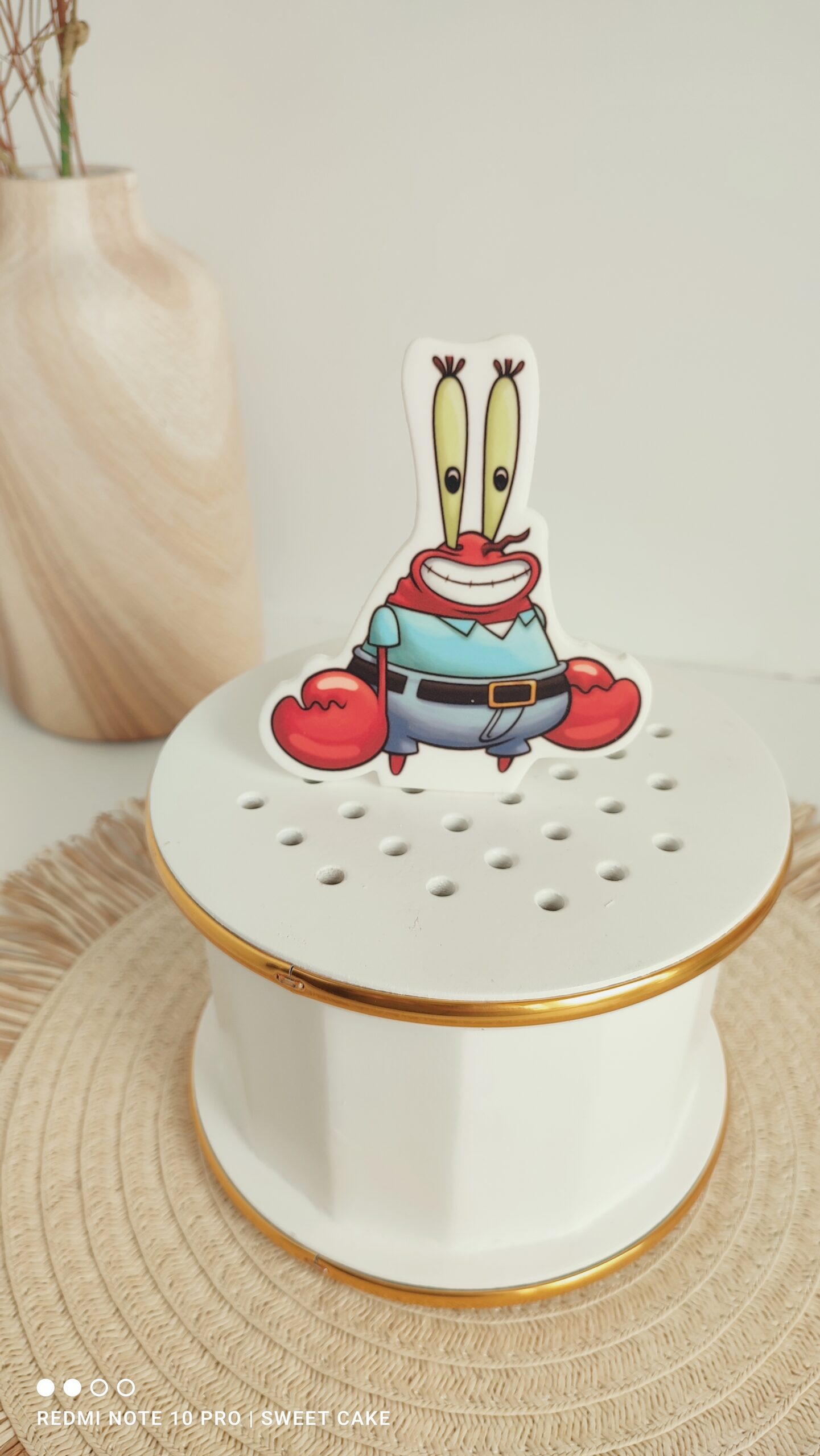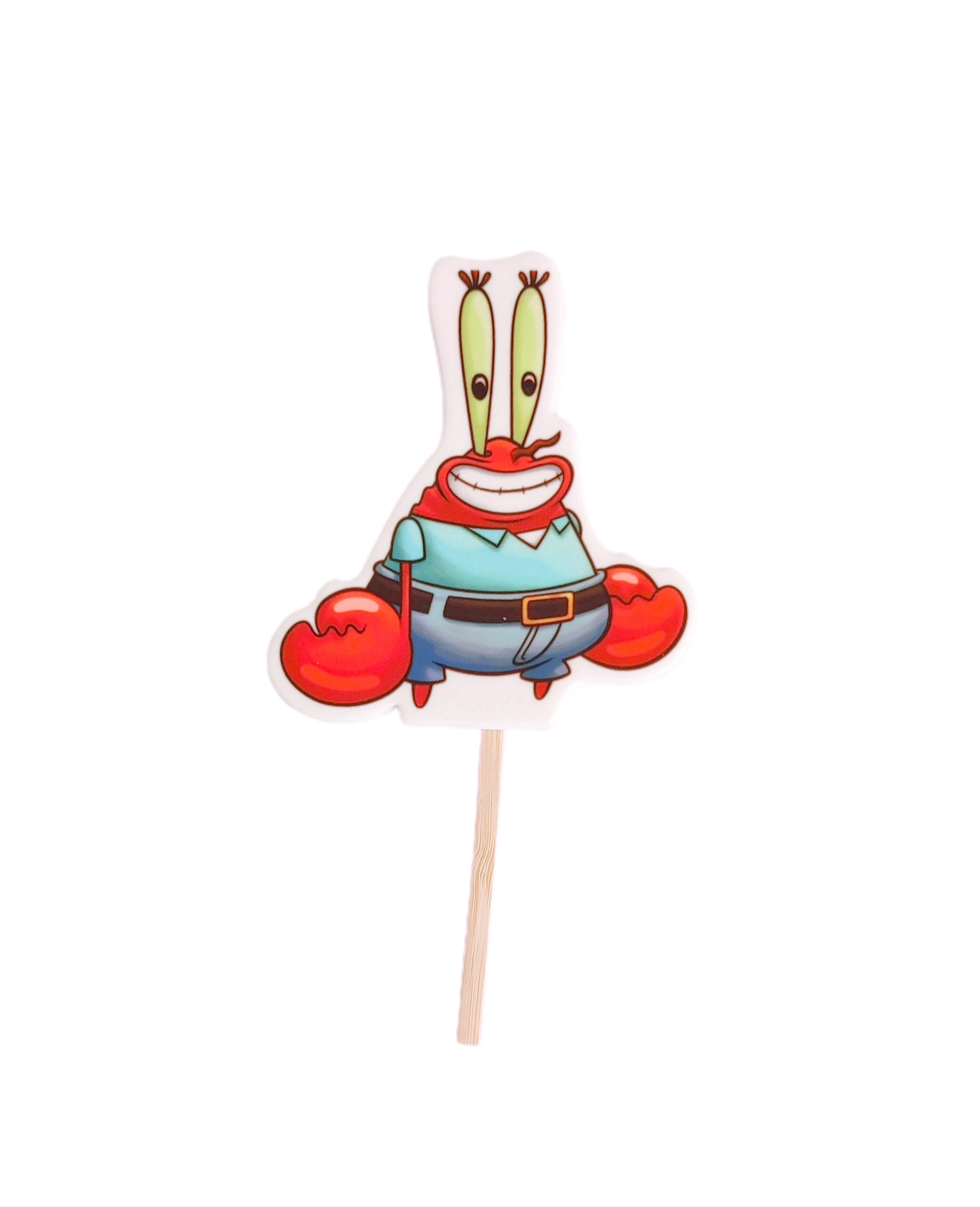 Topper/Tabliczka cukrowy 2D „PAN KRAB” 1 szt nadrukowany na masie cukrowej z drewnianym patyczkiem jest bardzo dobrym i tańszym zamiennikiem figurek cukrowych i opłatka na tort