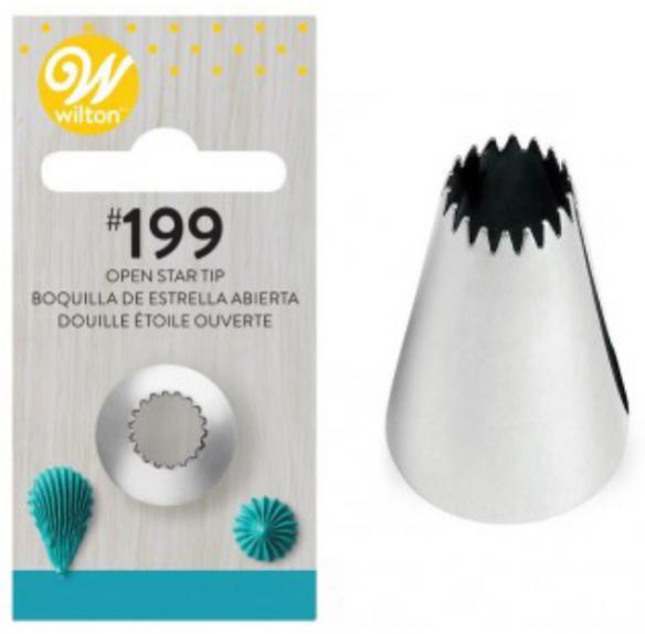 Tylka #199 otwarta gwiazdka Wilton to wysokiej jakości końcówka cukiernicza wykonana ze stali nierdzewnej, pokrytej specjalnym stopem niklu i mosiądzu zapobiegającym rdzewieniu. Ma długość 3,2 cm, średnicę podstawy 17 mm i średnicę otworu 8-9 mm, z 18 ząbkami. Tylka ta jest idealna do dekorowania tortów, babeczek i ciast kremem maślanym, bitą śmietaną, bezą czy lukrem, pozwalając na tworzenie unikatowych ozdób, takich jak rozety, gwiazdki, muszle, kwiaty, a nawet churros. Pasuje do rękawów cukierniczych marki Wilton i można ją myć ręcznie lub w zmywarce (najlepiej ręcznie). Dzięki wytrzymałemu materiałowi i precyzyjnemu wzorowi daje trwałe i efektowne dekoracje cukiernicze, idealne zarówno dla amatorów, jak i profesjonalistów.