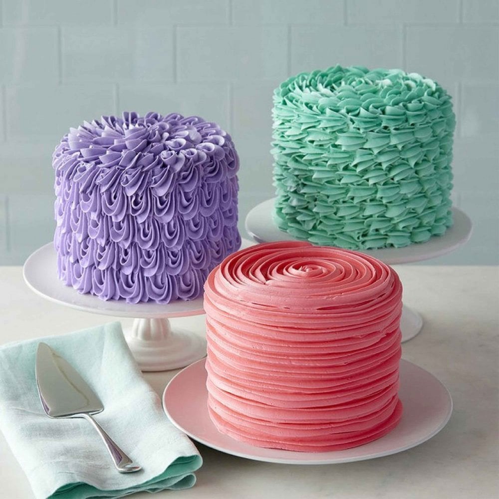 Tylka cukiernicza Wilton #1M otwarta gwiazdka duża to metalowa końcówka wykonana ze stali nierdzewnej, pokryta stopem niklu i mosiądzu, co zapobiega rdzewieniu. Ma długość około 4,3-4,6 cm, średnicę podstawy około 2,5-3,2 cm i średnicę otworu około 1,3-1,6 cm. Służy do dekoracji ciast, babeczek i deserów, umożliwiając tworzenie ozdób w kształcie dużych gwiazdek, rozet, muszelek, serpentyn czy kwiatków. Może być używana do wyciskania kremów, bitej śmietany czy bezy, najlepiej razem ze standardowym adapterem (couplerem). Jest łatwa w czyszczeniu, można ją myć ręcznie lub w zmywarce. Tylka jest popularna wśród amatorów i profesjonalistów, pozwalając na szybkie i efektowne dekorowanie wypieków, a jej wysoka jakość gwarantuje długotrwałe użytkowanie bez odkształceń
