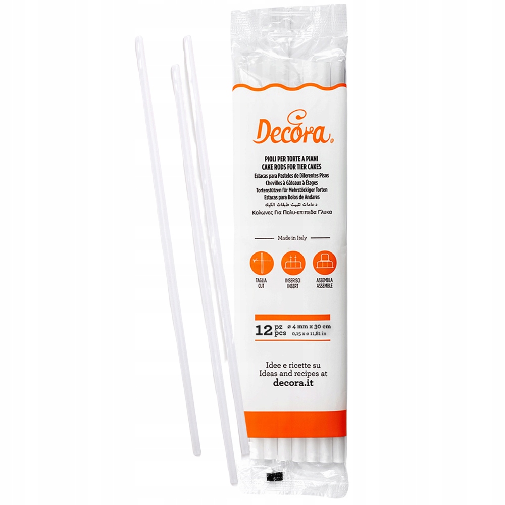 Planujesz zrobić efektowny tort piętrowy, który zachwyci gości? Nasze podpórki do tortu piętrowego Decora to niezbędny element każdej słodkiej kompozycji! Wykonane z trwałego, lekkiego plastiku o grubości 4 mm i długości 30 cm, zapewniają stabilne i bezpieczne podparcie nawet największym i najcięższym warstwom tortu.