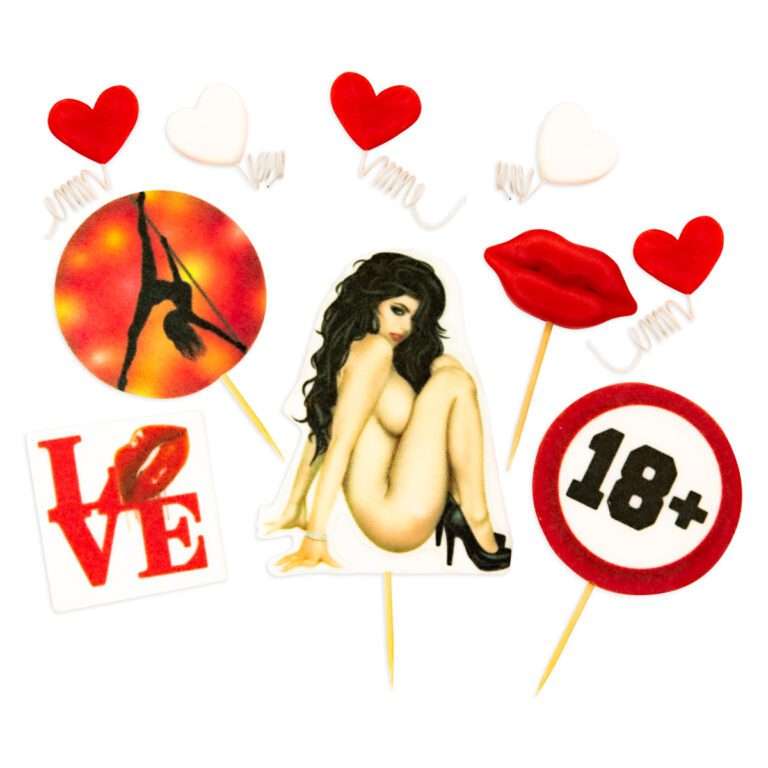 Chcesz zrobić niezapomniany tort na wieczór kawalerski bądź 18-stkę polecamy nasz zestaw figurek cukrowych 2D. Zestaw przedstawia kobietę siedzącą , dodatkowo są jeszcze elementy do dekoracji takie jak usta, serduszka, znaczek 18, napis LOVE. Figurki wykonane są z masy cukrowej, są wspaniałą dekoracją tortów urodzinowych dla dorosłych.