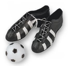 Figurki plastikowe w kształcie zestawu piłkarskiego. To gotowa do użycia dekoracja niejadalna z tworzywa sztucznego dopuszczonego do kontaktu z żywnością. W skład zestawu wchodzą 3 elementy: piłka i dwa czarne buty. Buty posiadają sznurowadła i 10 cm w długości, a piłka ma średnicę 3,5 cm. Idealne do ozdobienia tortu, deseru i innych wypieków. Wspaniały pomysł na ozdobienie tortu dla prawdziwego fana piłki nożnej! Kolorystyka i forma chętnie wykorzystywana do dekoracji tematycznych związanych urodzinami i dniem chłopaka.
