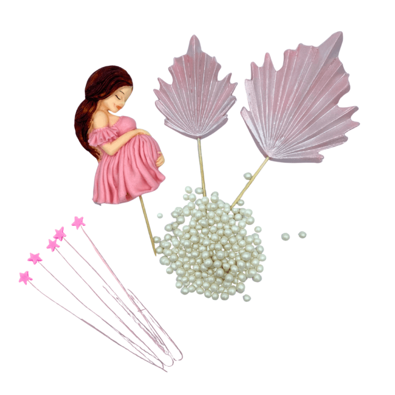 Figurki cukrowe Kobieta w ciąży toppery + perełki (róż)