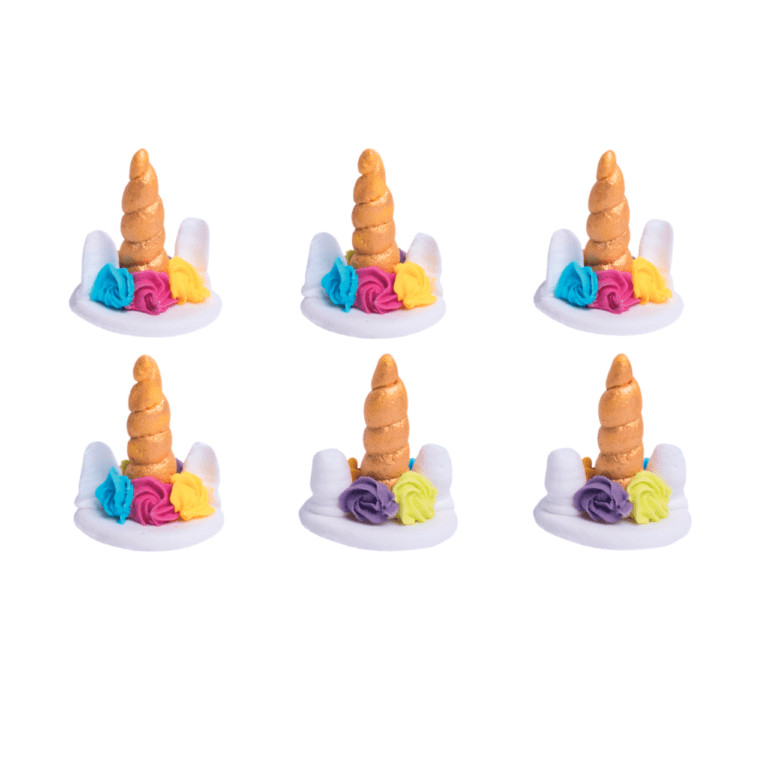 Zestaw dekoracji cukrowych: Małe jednorożce na babeczki daje możliwość efektownego ozdobienia słodkich wypieków. W jego skład wchodzi 6 cukrowych figurek z motywem rogów jednorożca. Mają przepiękne kolory i twardą tekturę. Dzięki temu nasze figurki cukrowe podkreślą wyjątkowy charakter słodkości i zachowają swój pierwotny kształt na różnych masach i deserach. Sprawdzą się nie tylko jako dekoracja babeczek, ale też ciast, deserów i tortów.