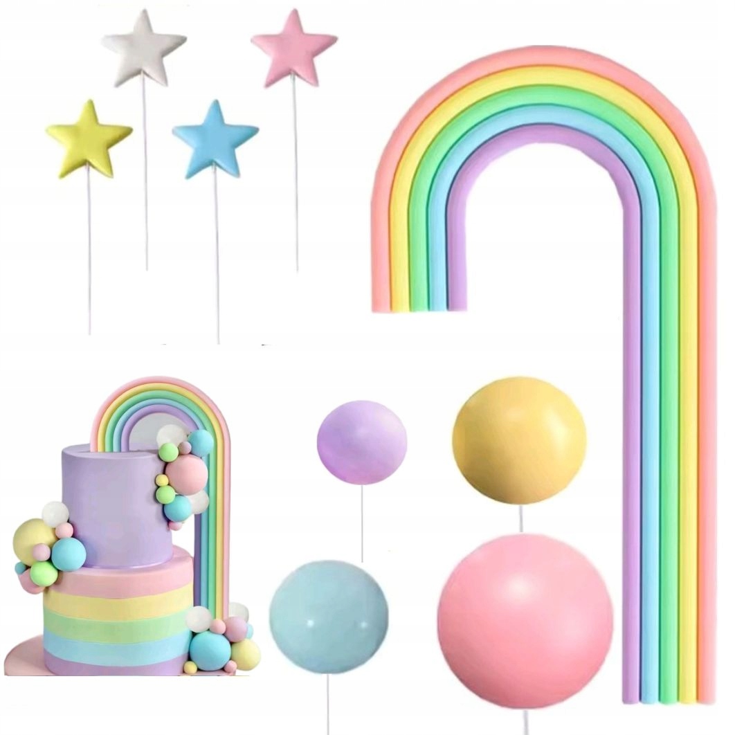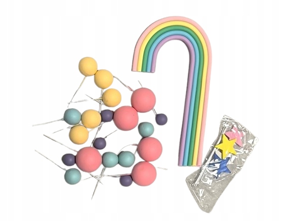 Zestaw ozdób TĘCZA PASTELOWA i kulek plastykowych tylko i wyłącznie do dekoracji 20 elem. ne jadalna
