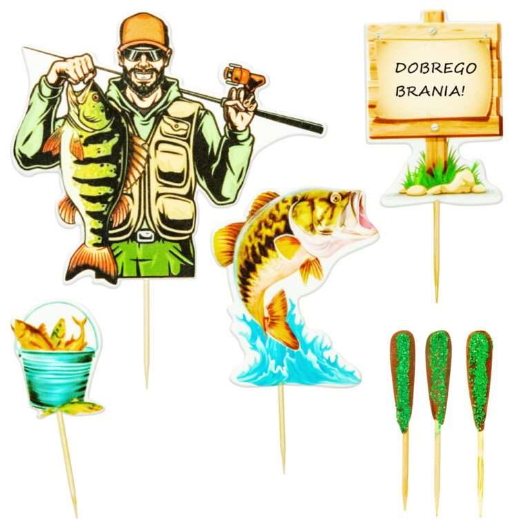 Figurki cukrowe: Wędkarz 2D to najlepszy dodatek na imprezę urodzinową dla miłośnika łowienia ryb.